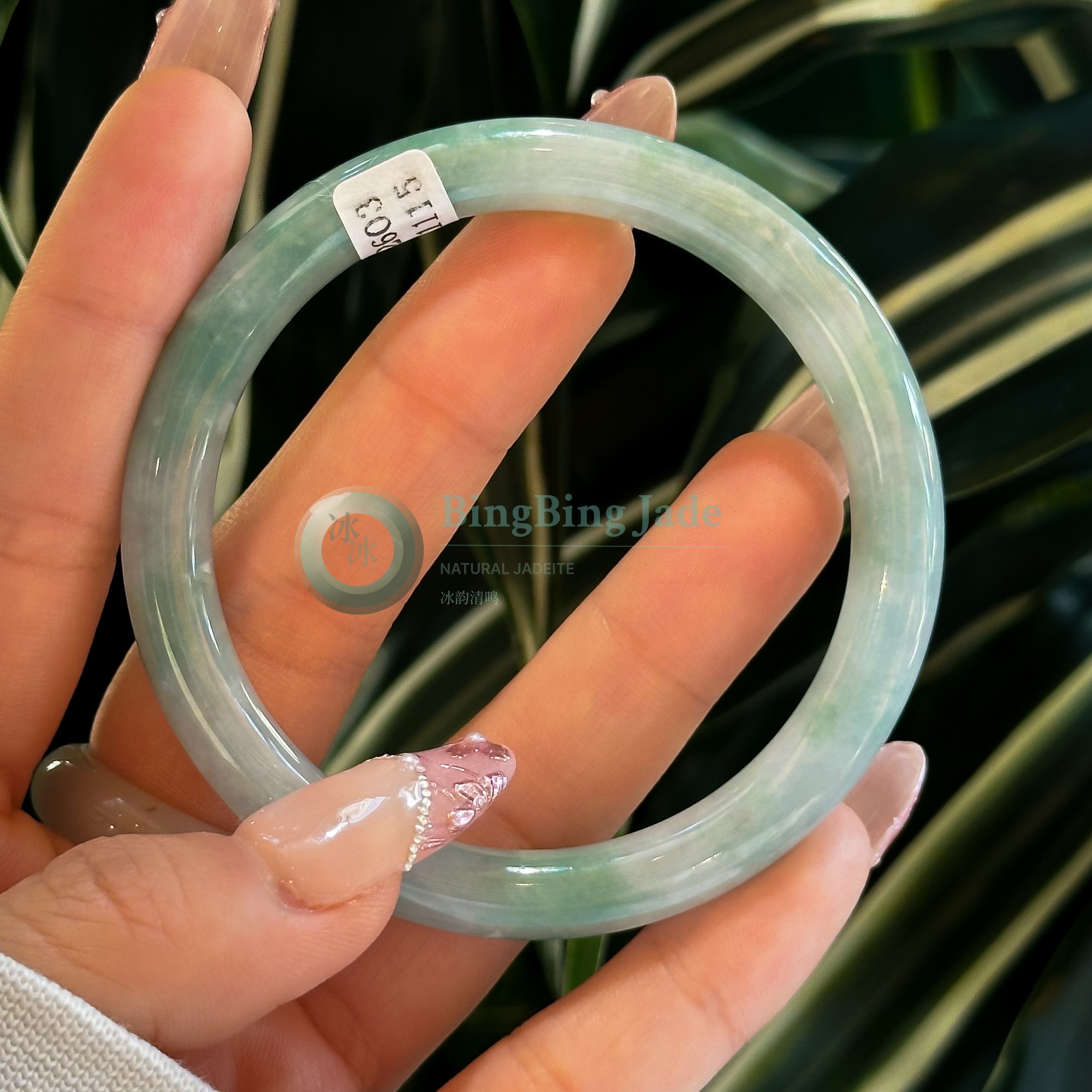 Lavender Mist with Floating Green Kiss — Jadeite Bangle 56.5mm
