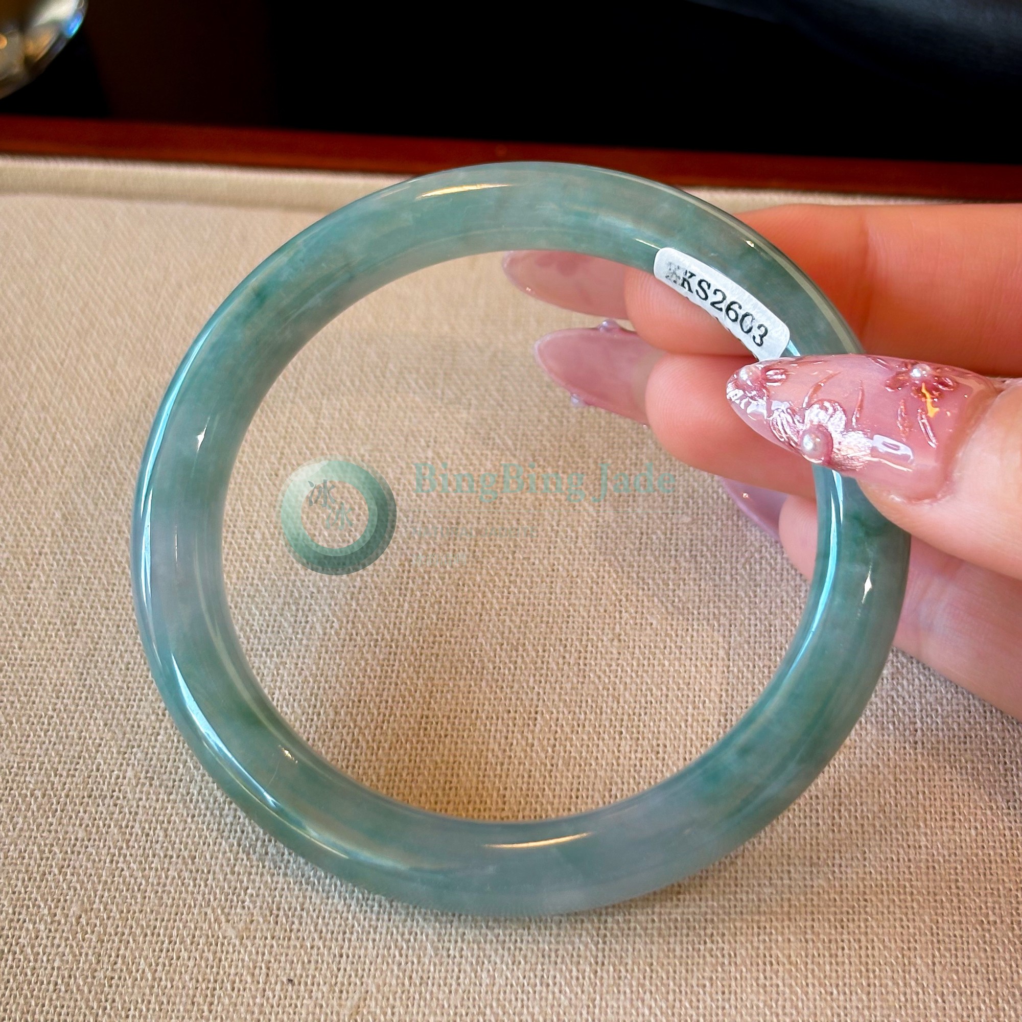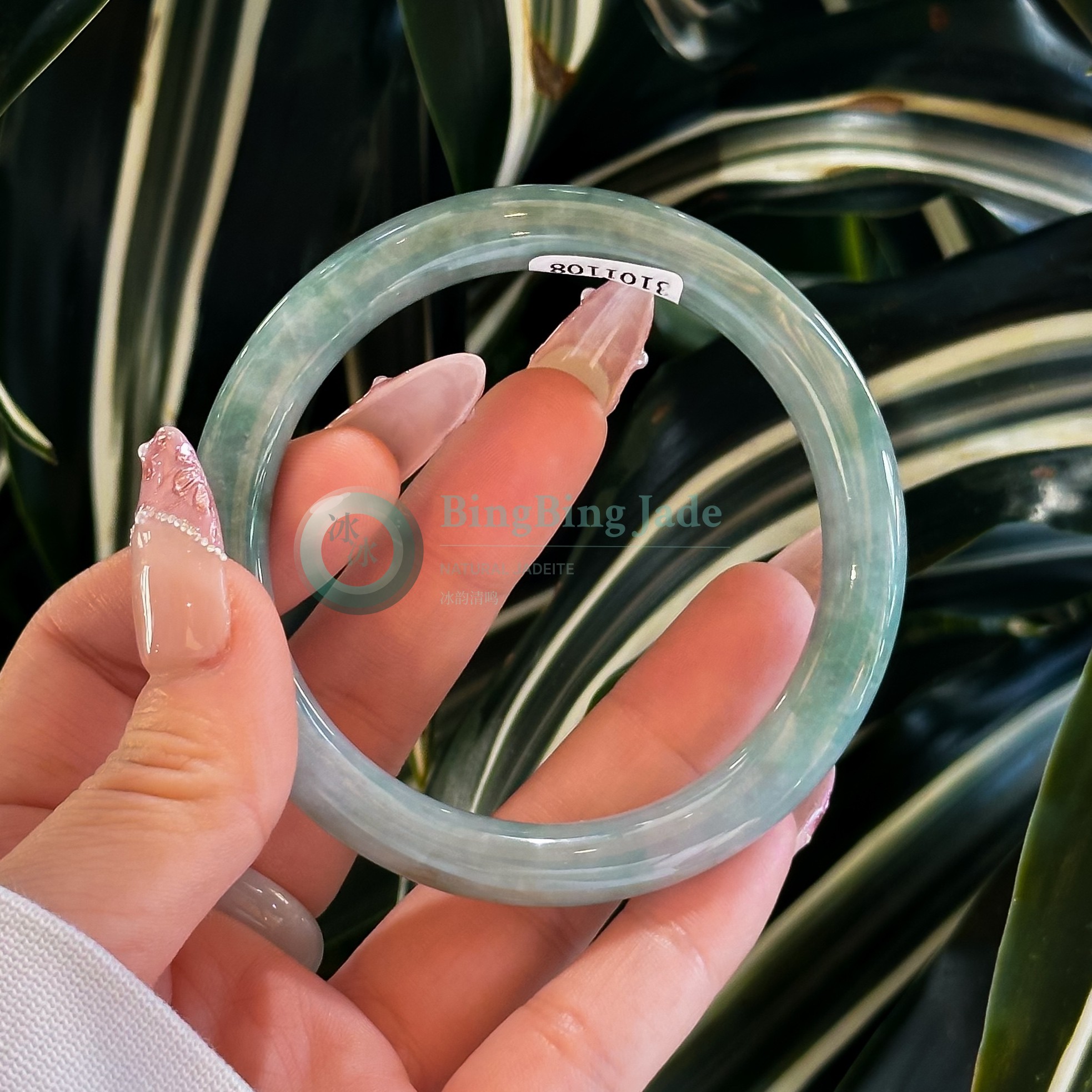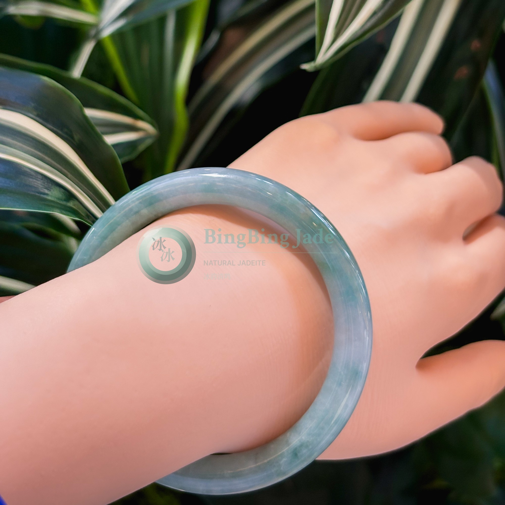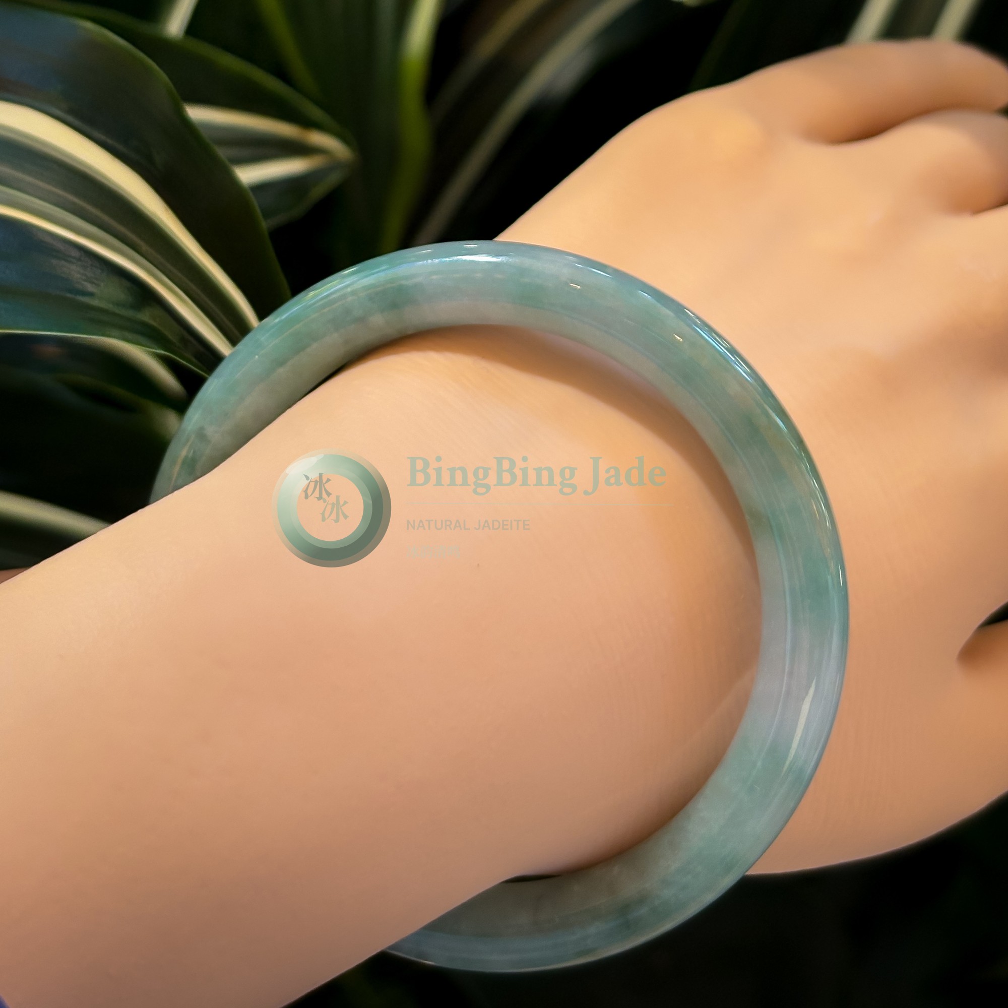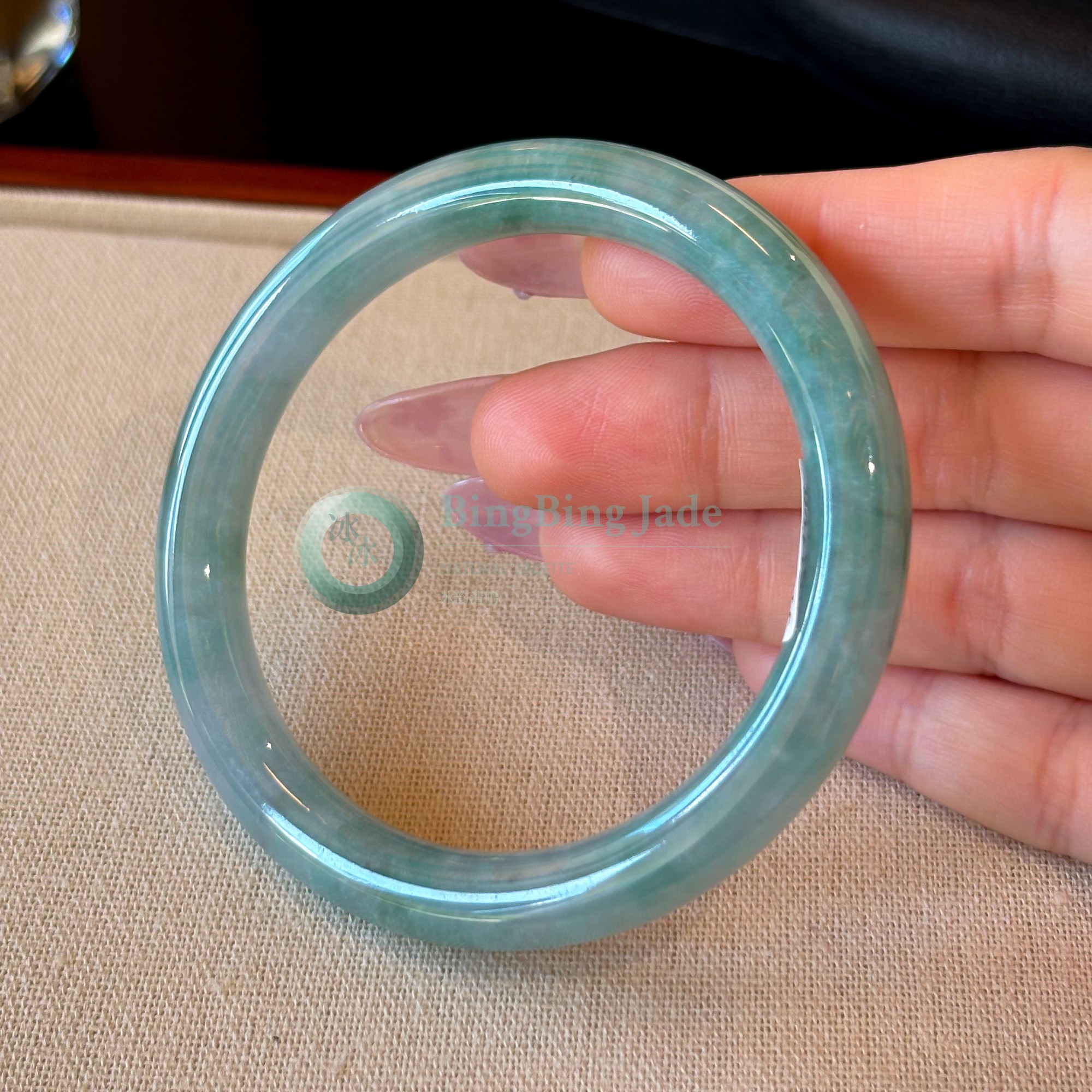 Shifting Teal Glow — Blue-Green Jadeite Bangle 57mm