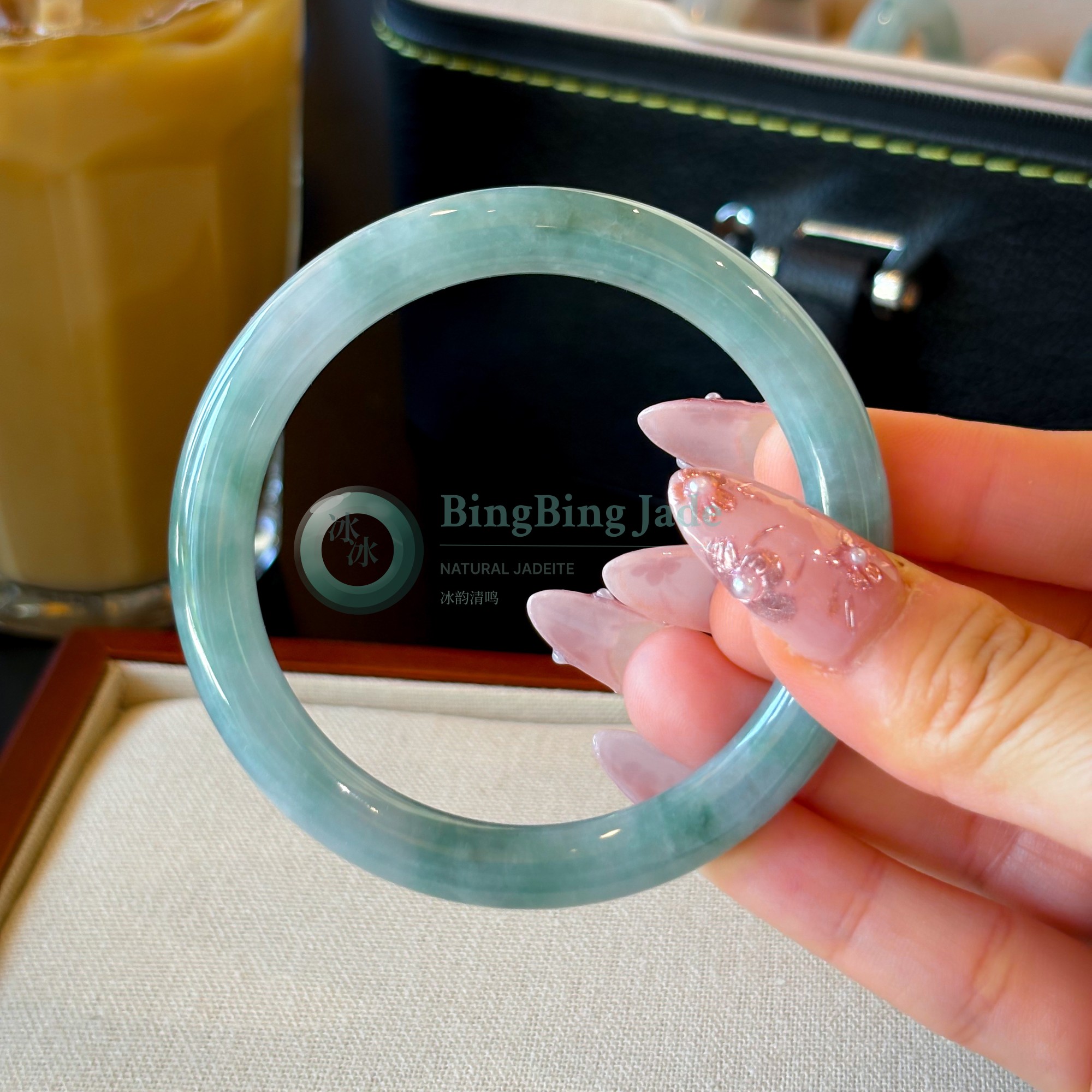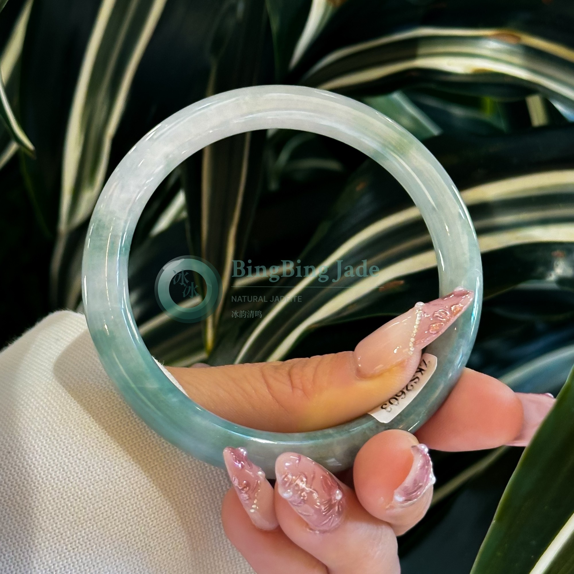 Lavender Mist with Floating Green Kiss — Jadeite Bangle 56.5mm