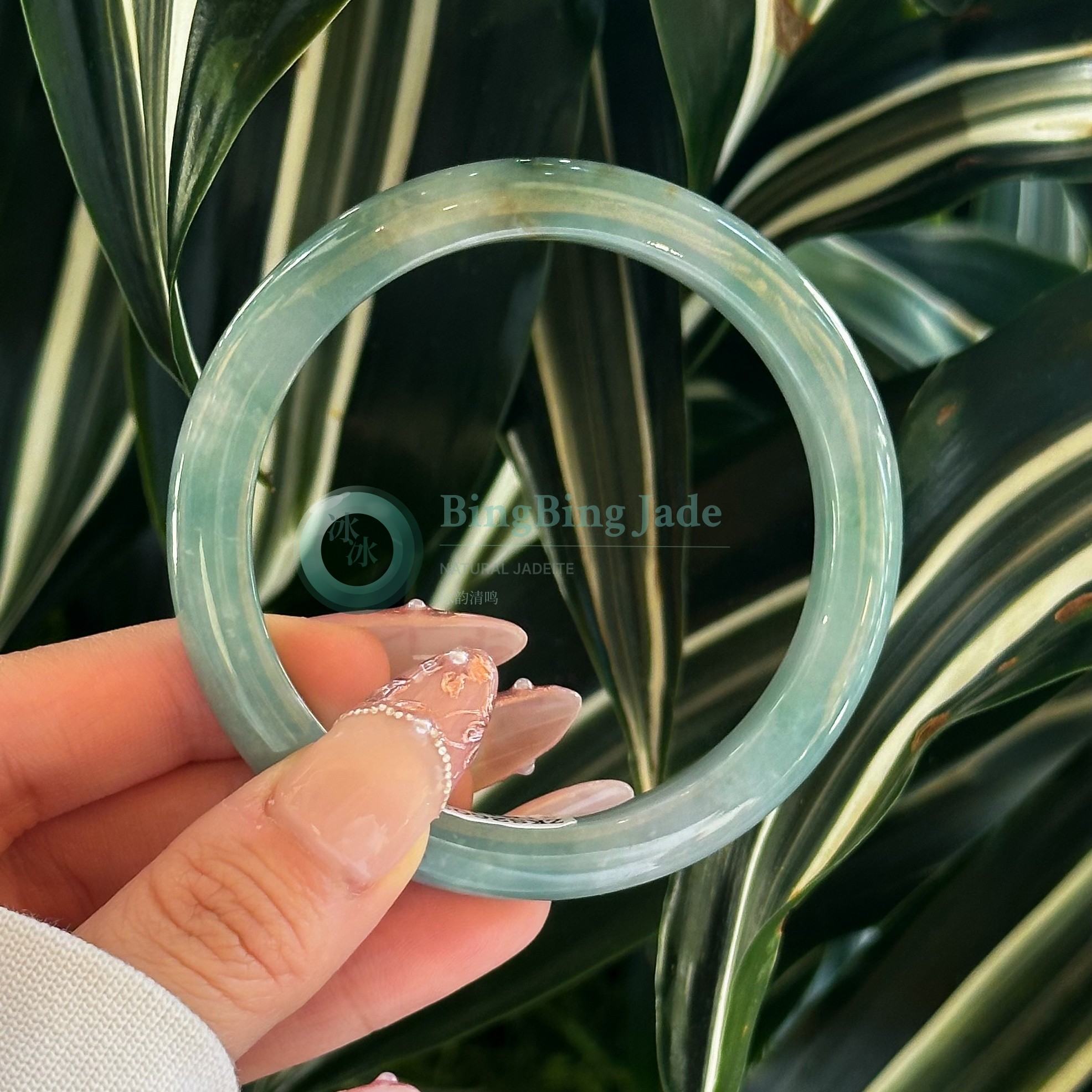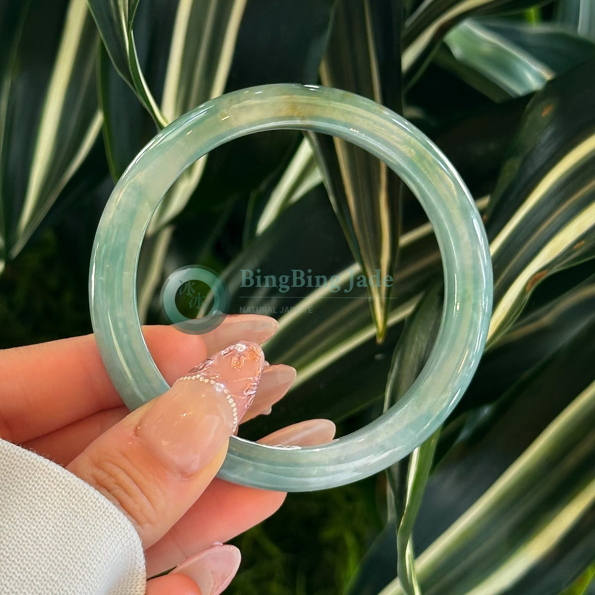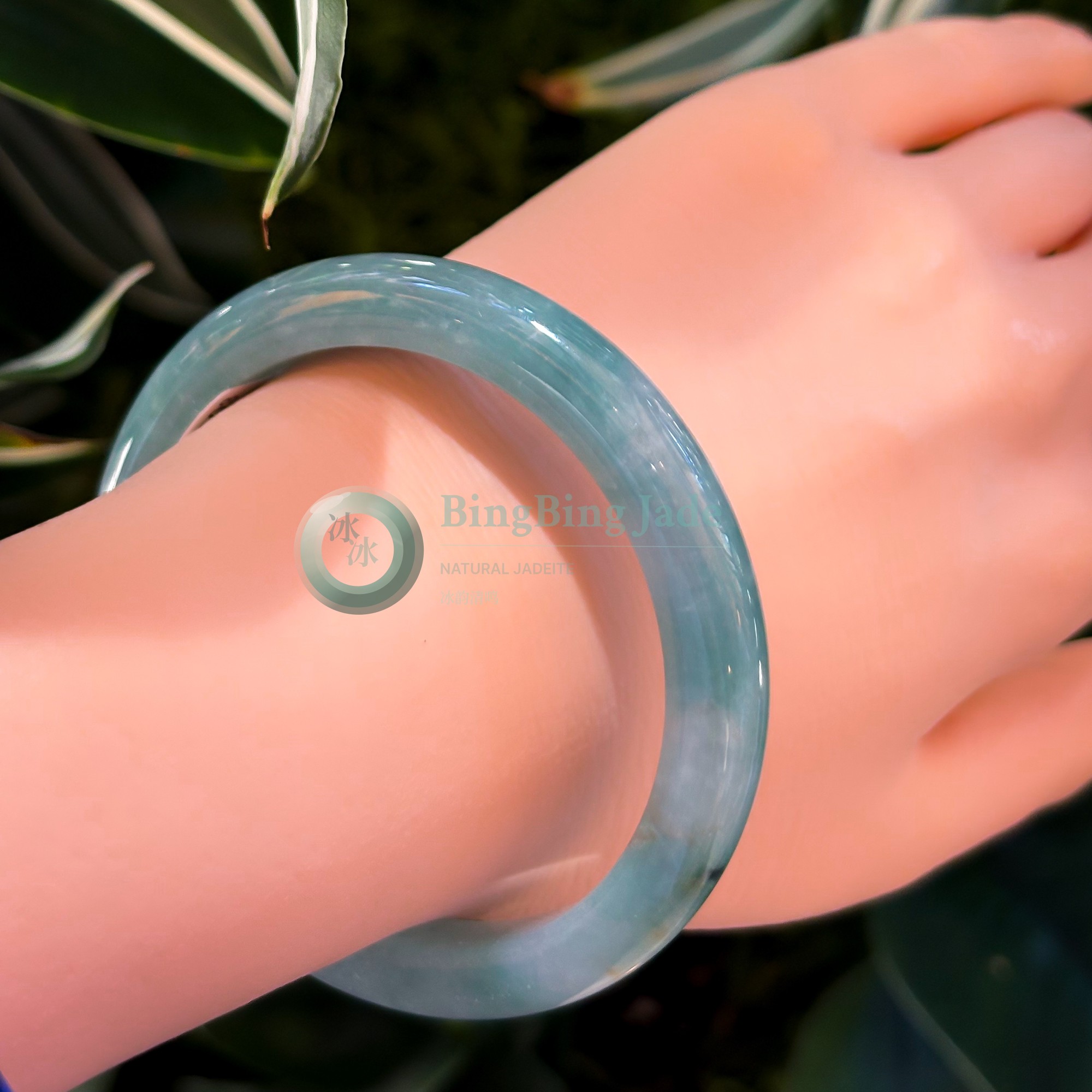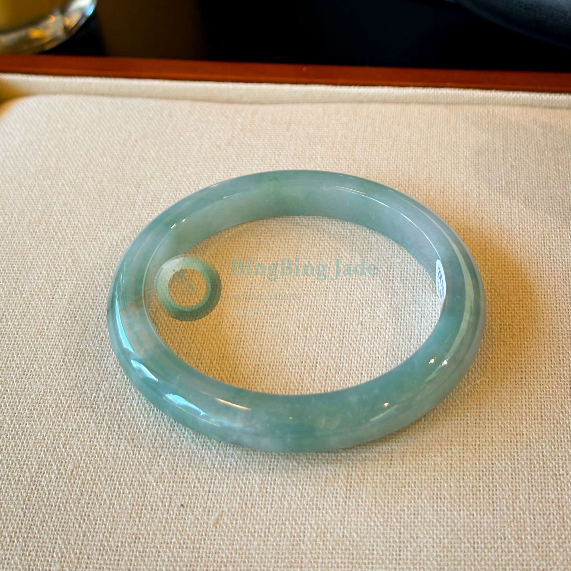 Soft Aqua Jelly Glow — Bluish-Green Jadeite Bangle 56mm