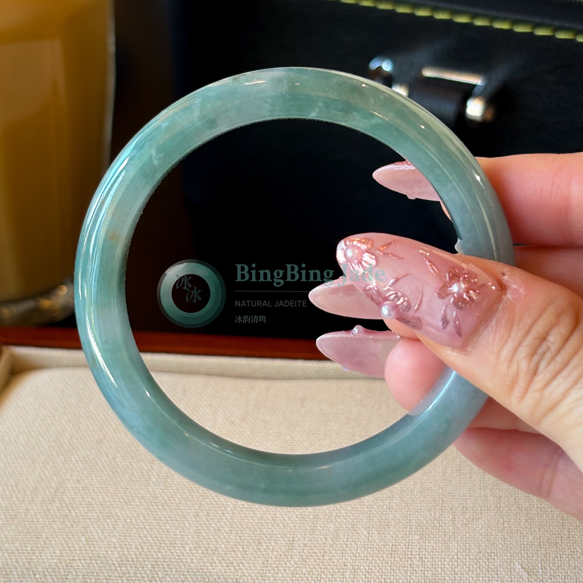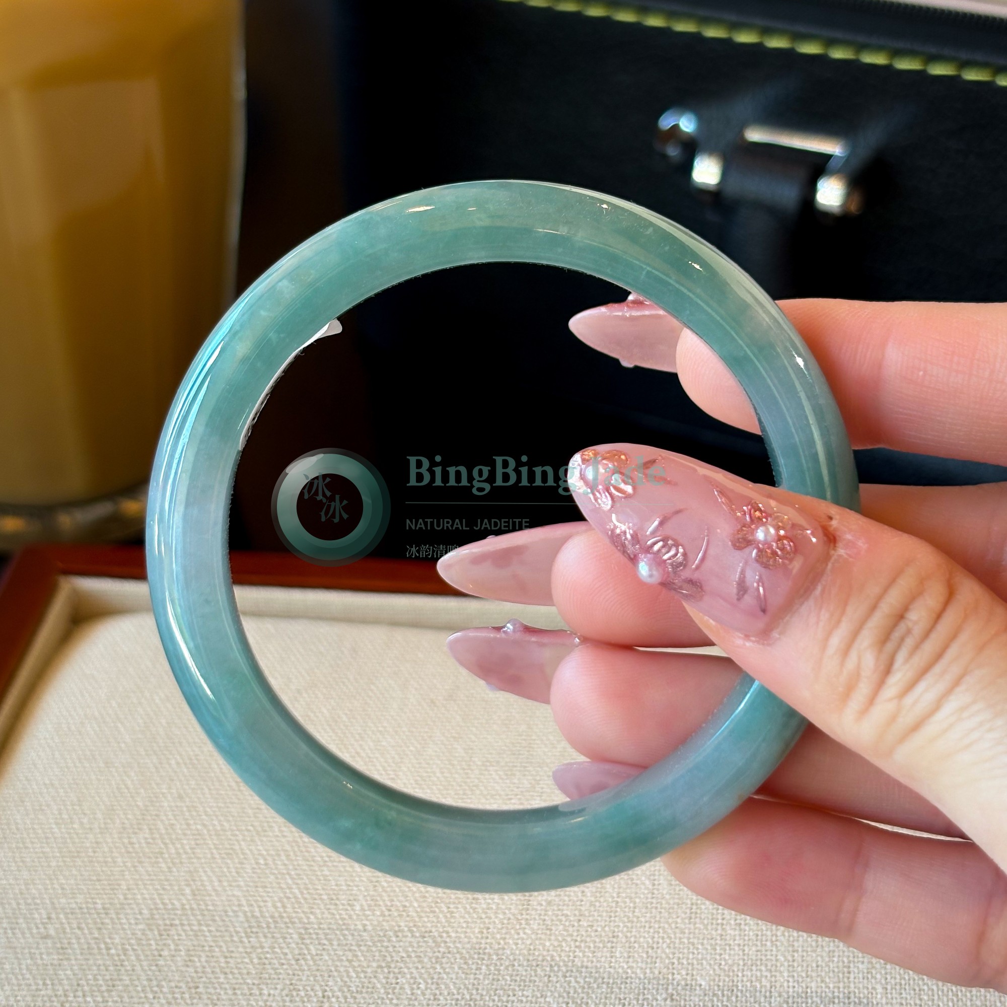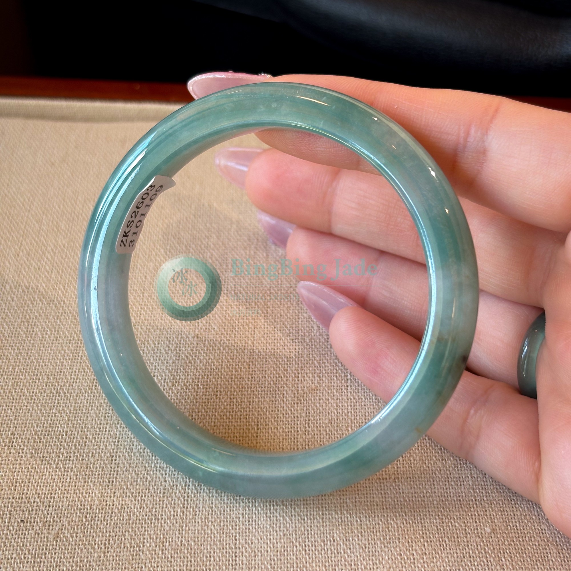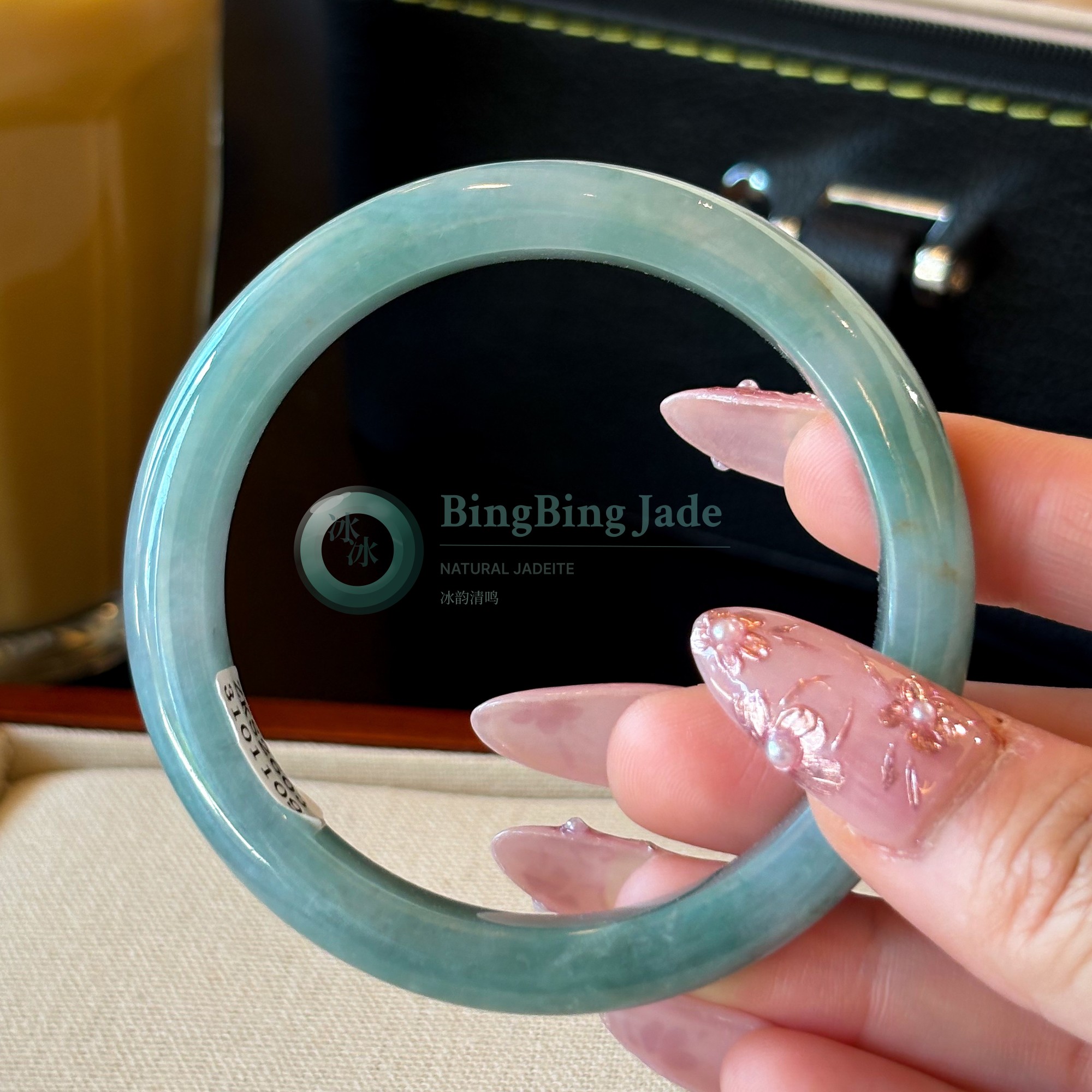 Soft Aqua Jelly Glow — Bluish-Green Jadeite Bangle 56mm