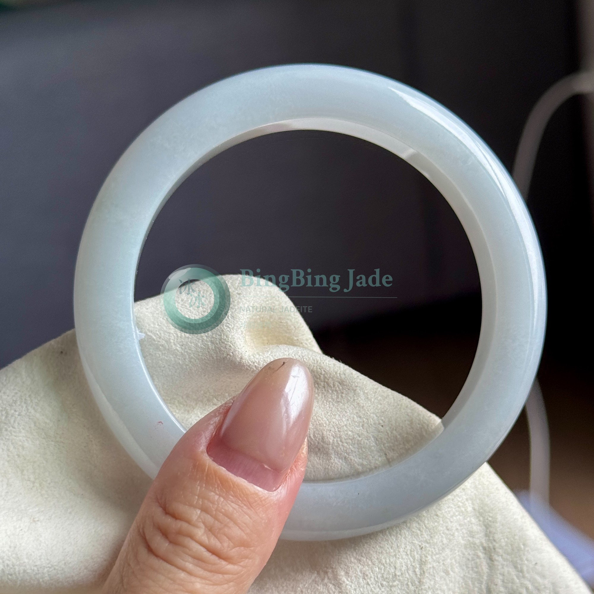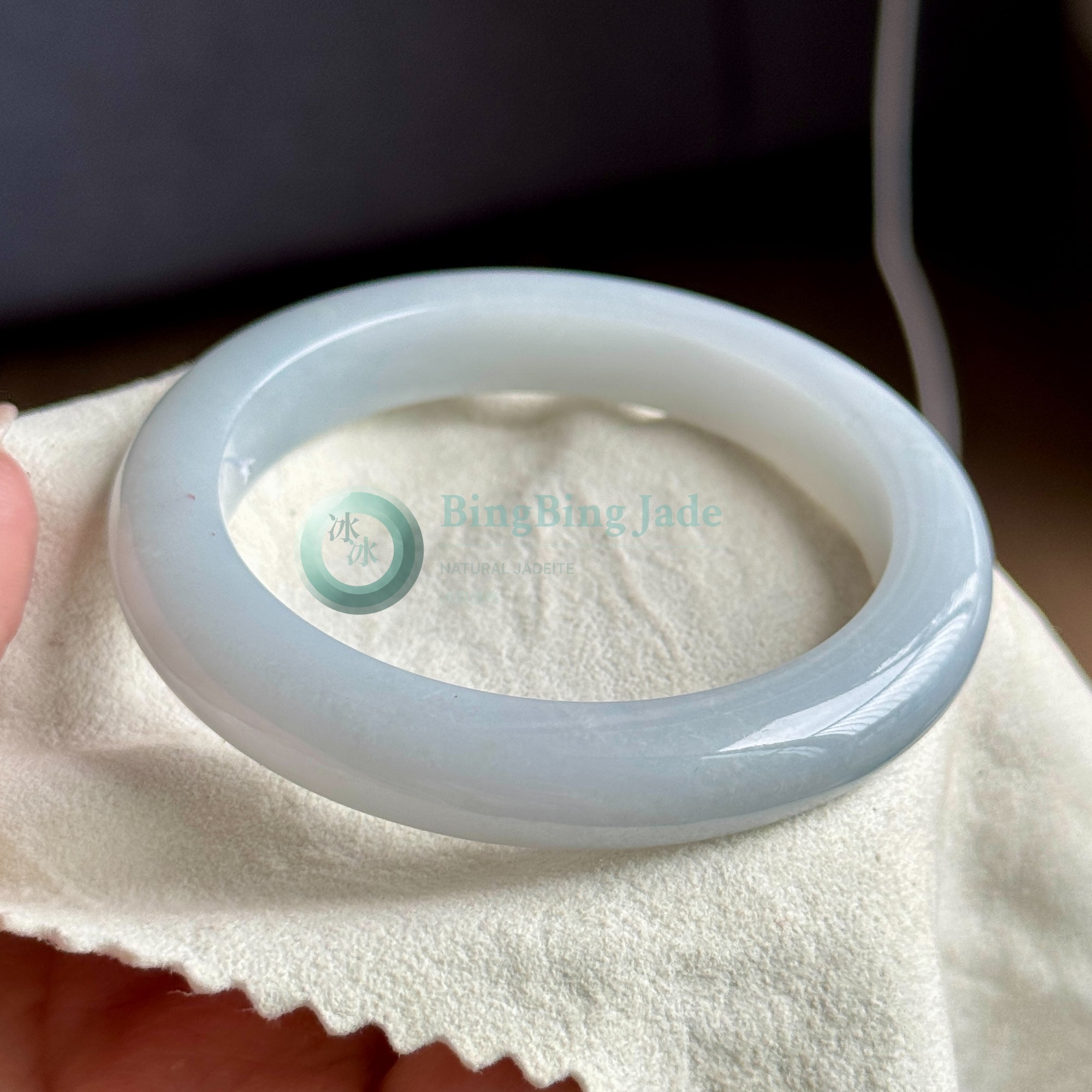 Soft White with Blue Undertone Jadeite Bangle 56mm