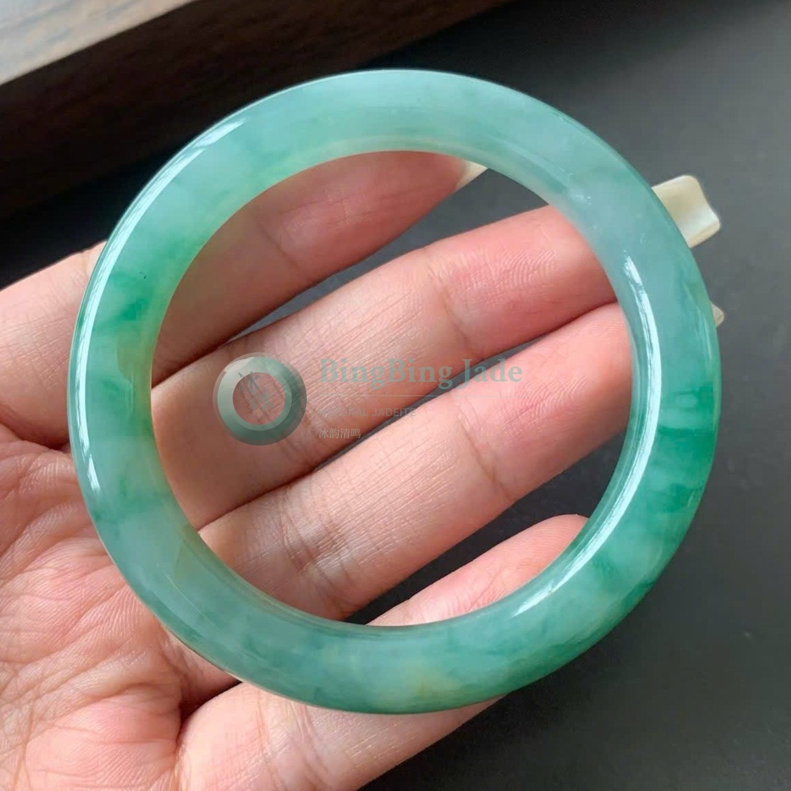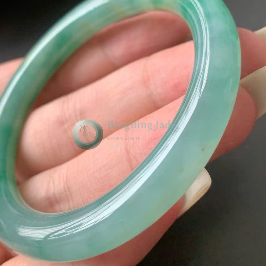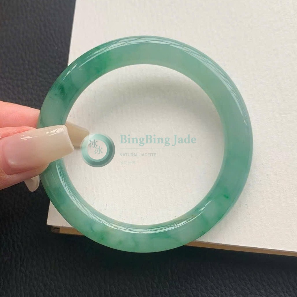 Floating Spring Green Icy Bangle 54mm — Cloud-Washed Emerald on Pristine Glass