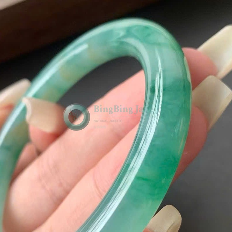 Oceanic Drift — Emerald Jadeite Bangle 56.7mm