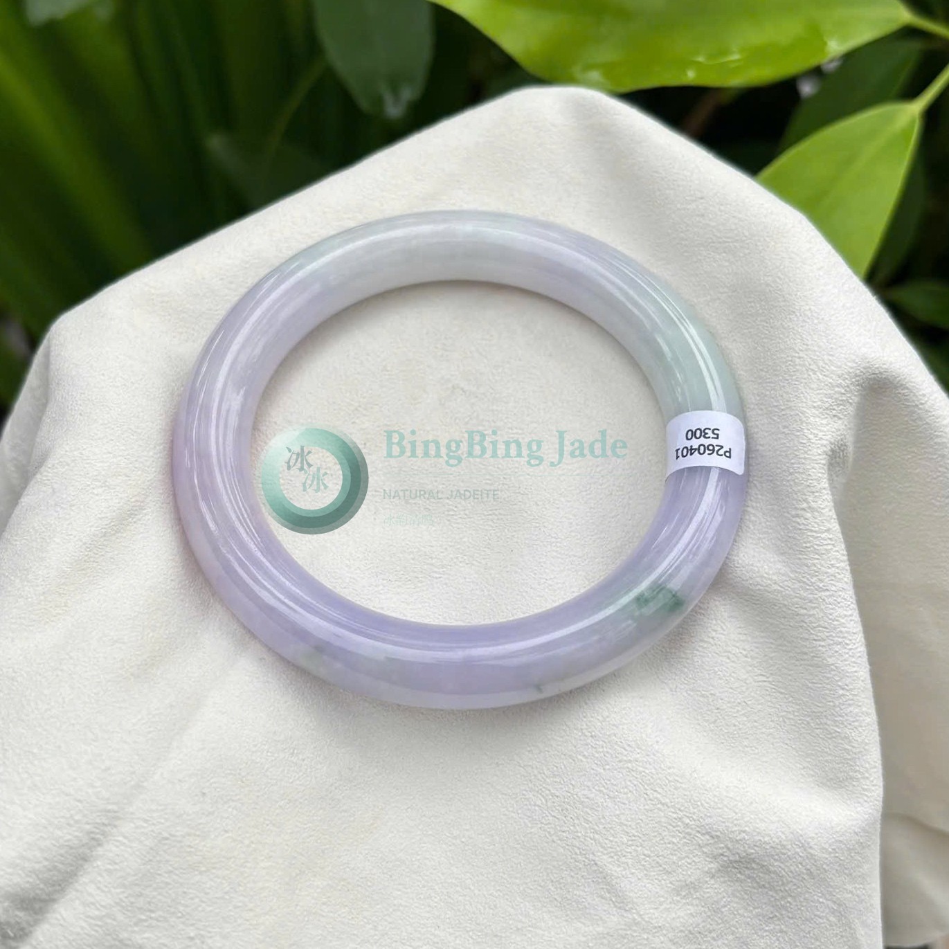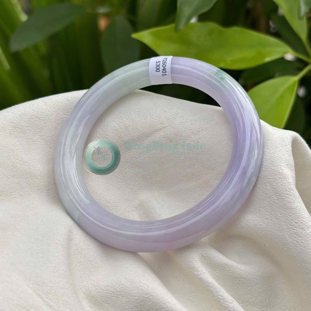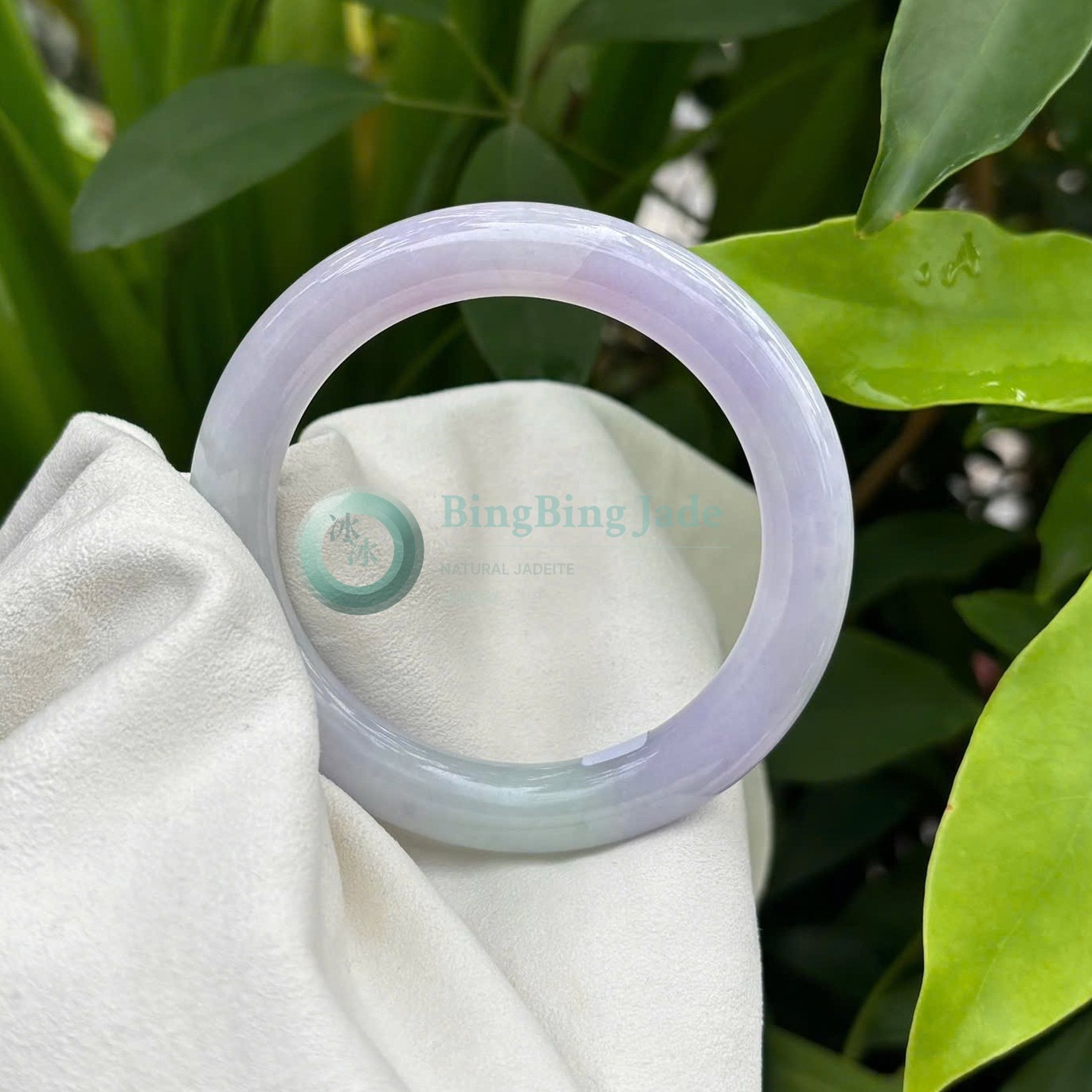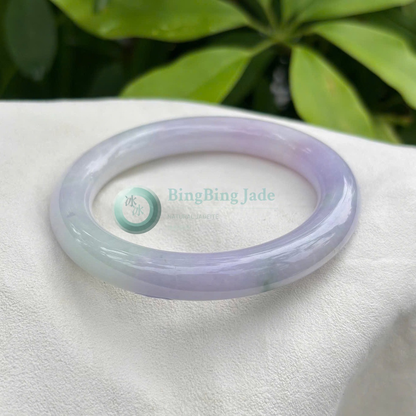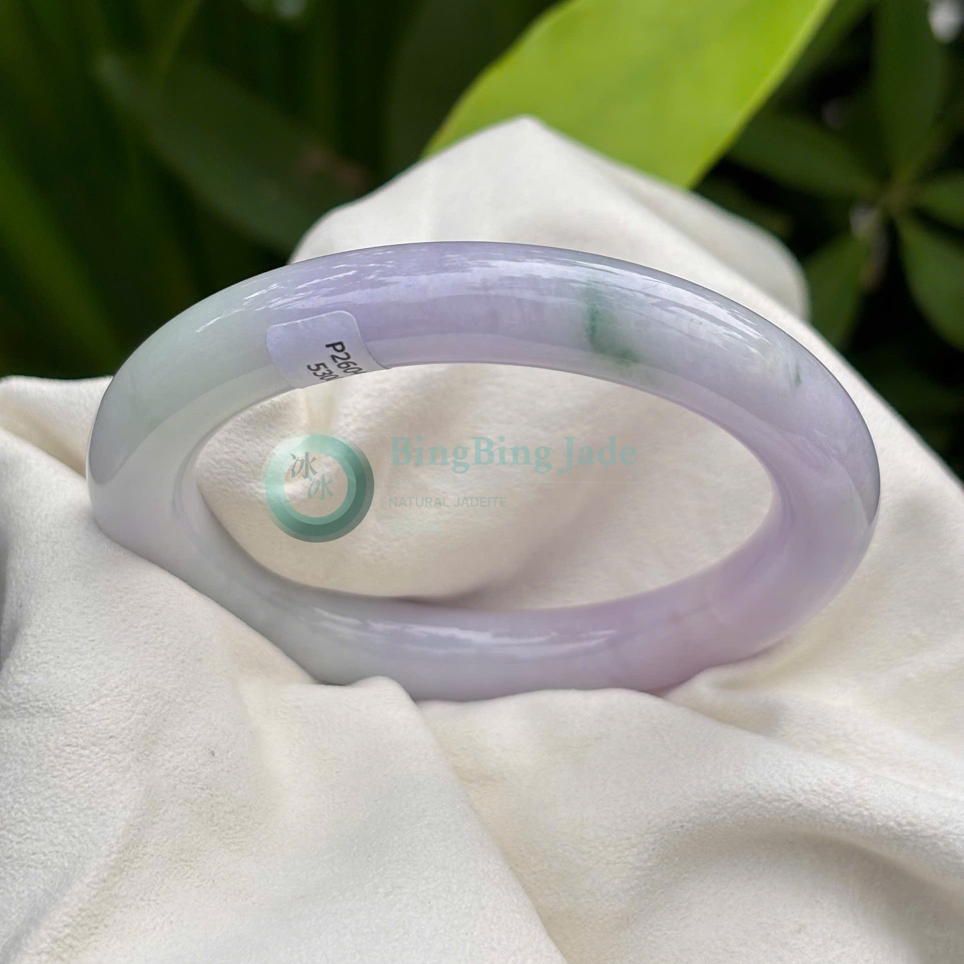 Lavender Mist with Floating Green Kiss — Jadeite Bangle 56.5mm