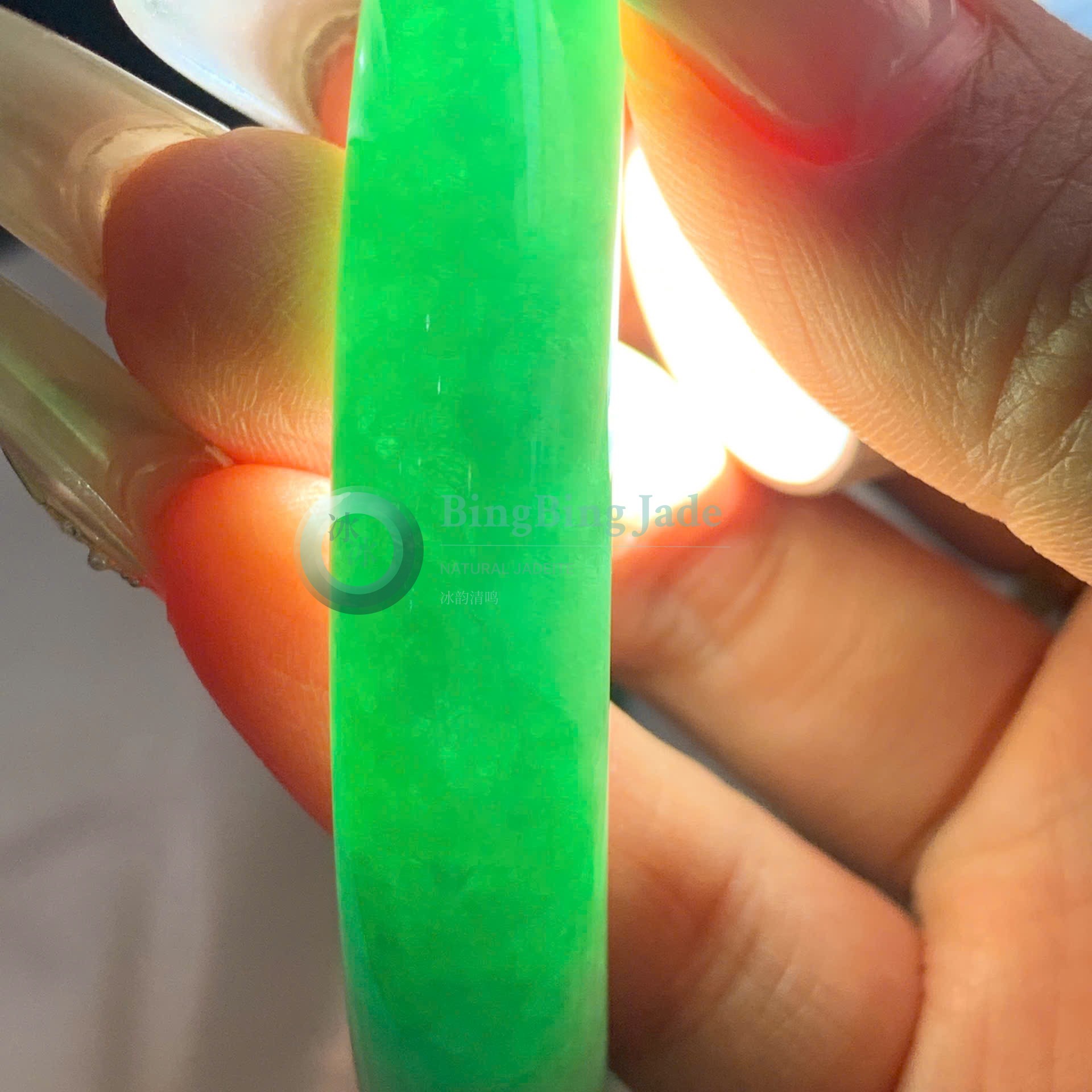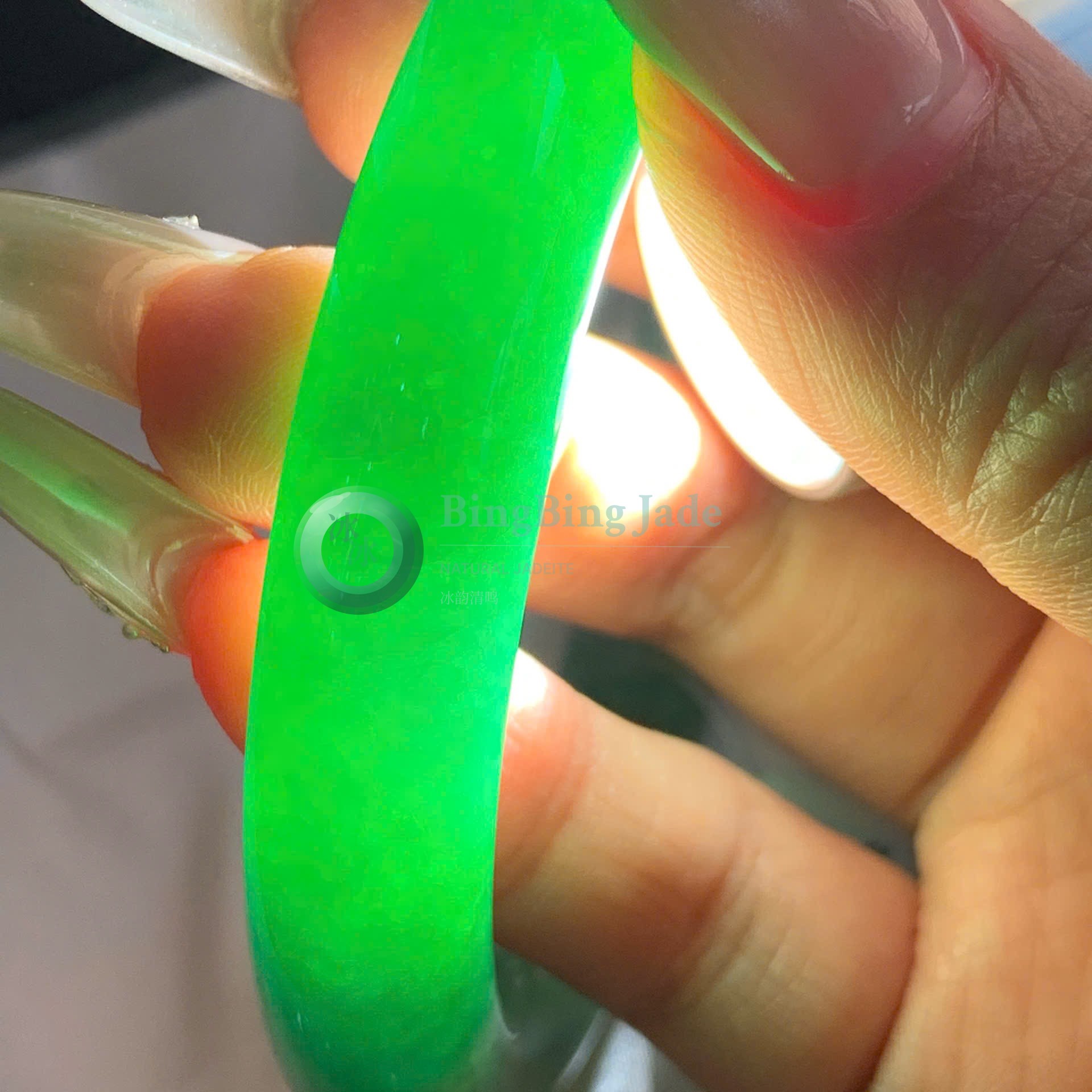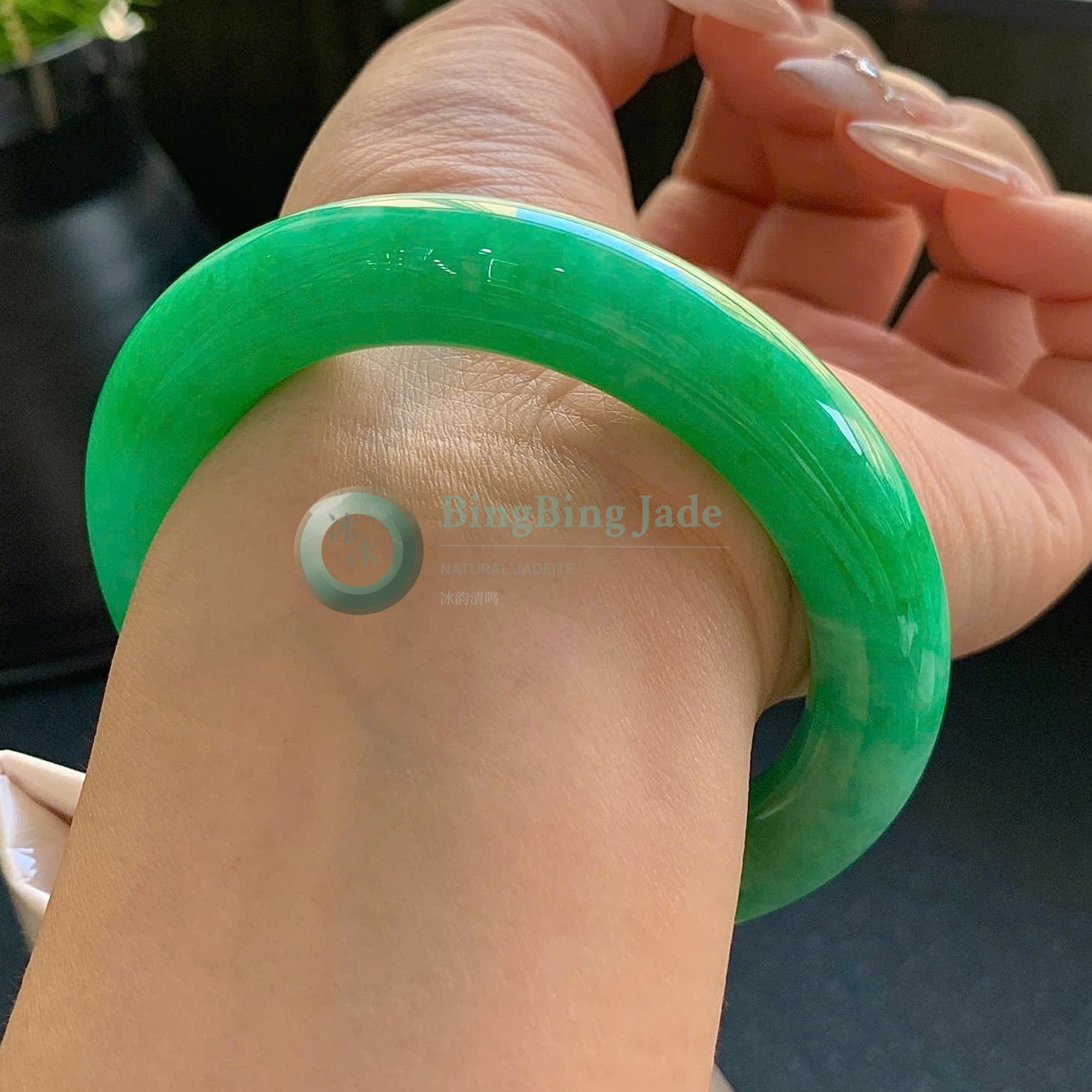 Vivid Emerald Full-Green Round Bangle 55mm — Saturated Spring Intensity