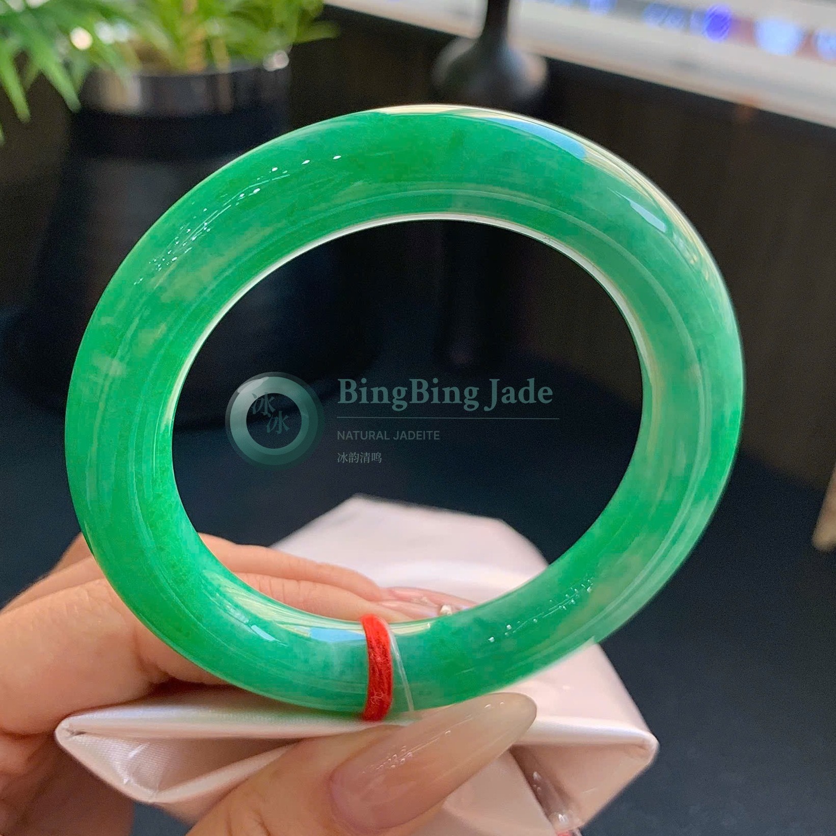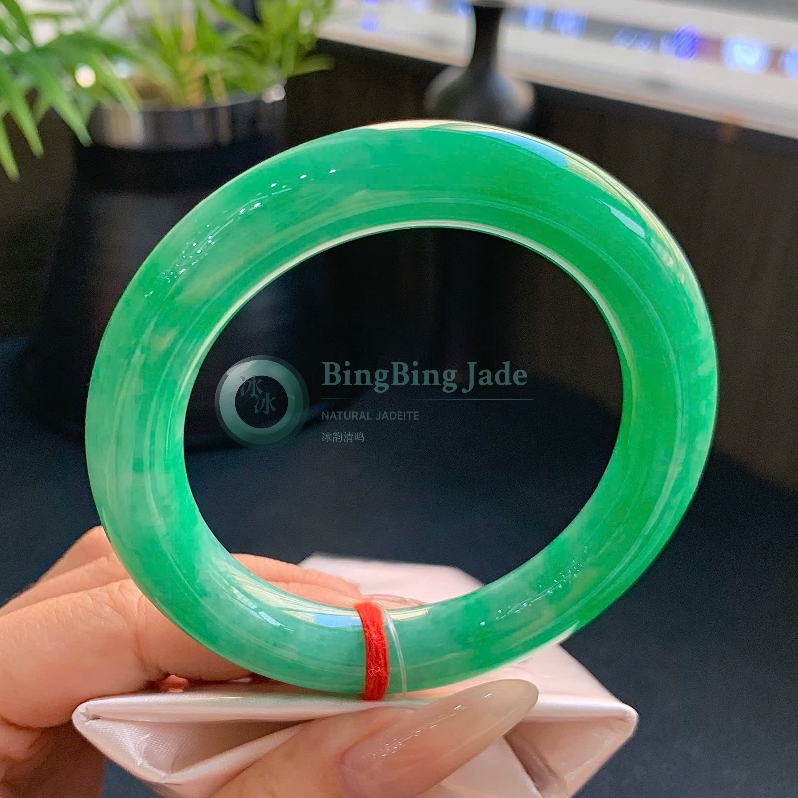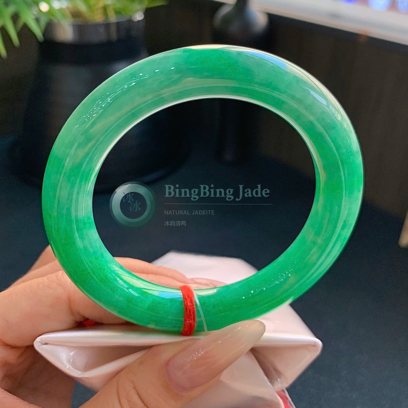 Vivid Emerald Full-Green Round Bangle 55mm — Saturated Spring Intensity