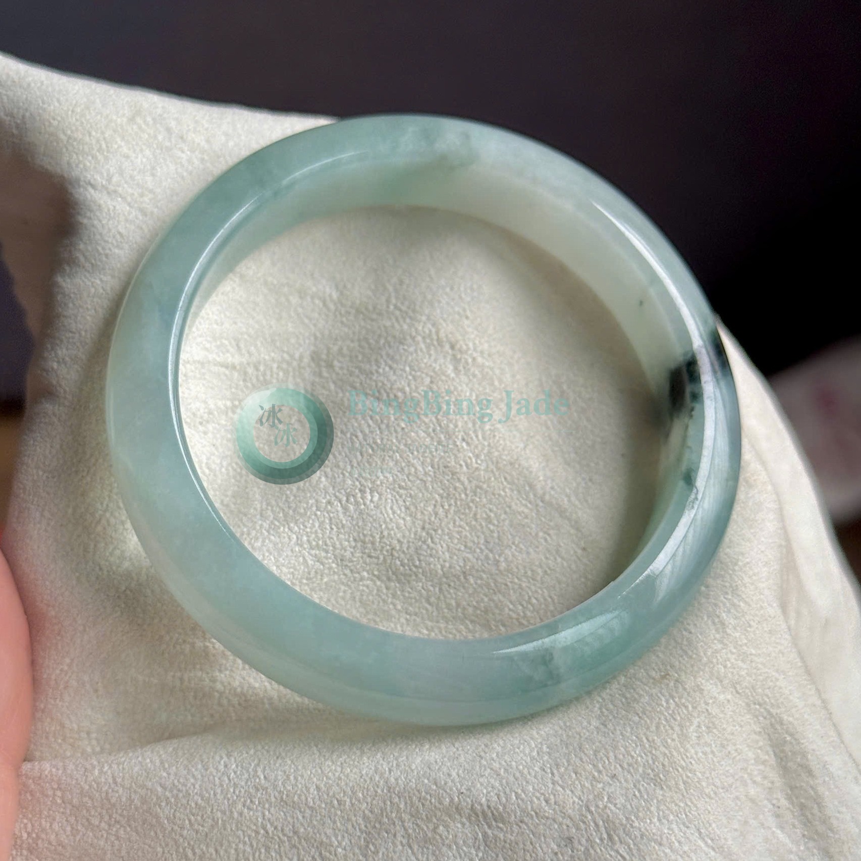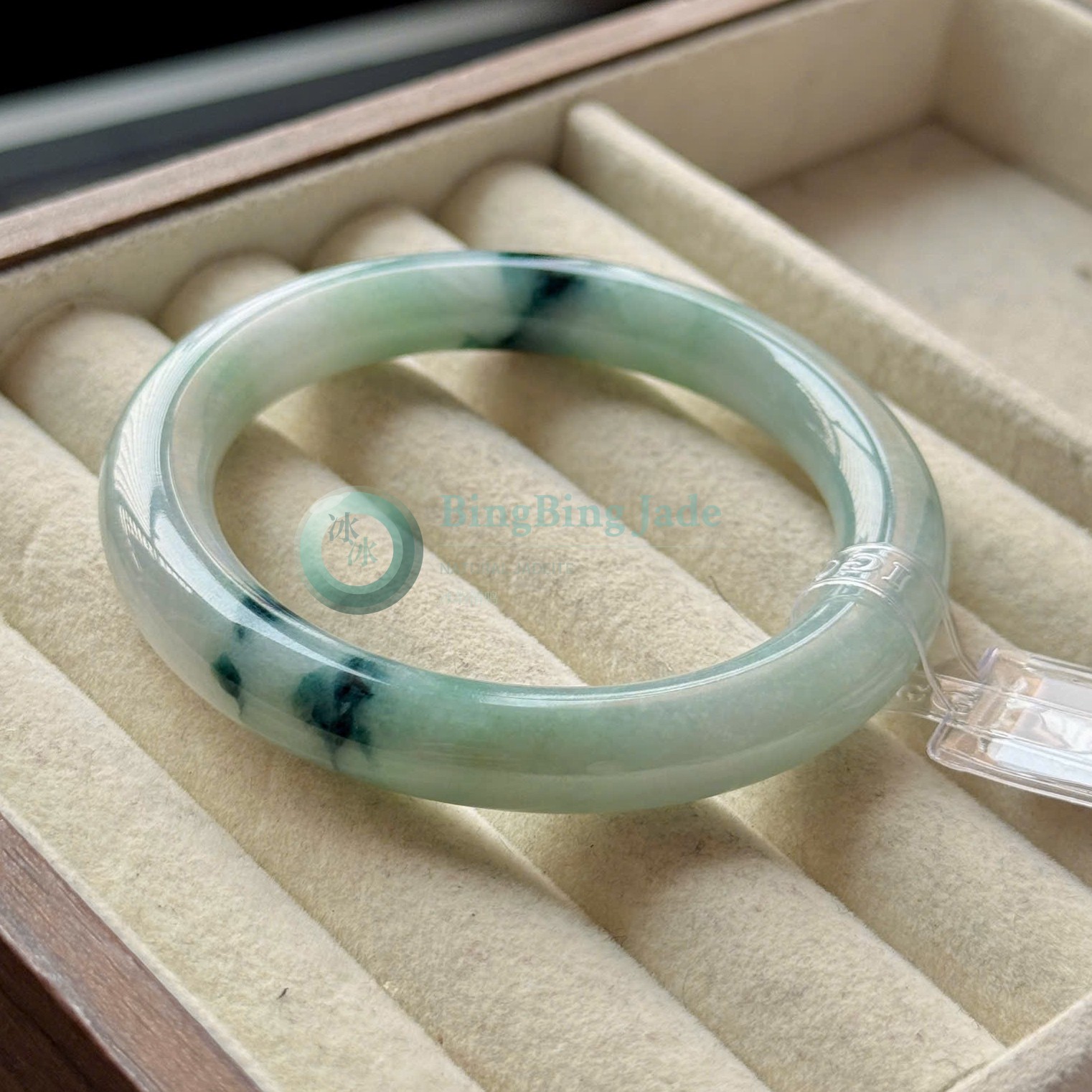 Celadon with Dark Moss Kiss — Jadeite Bangle 54mm