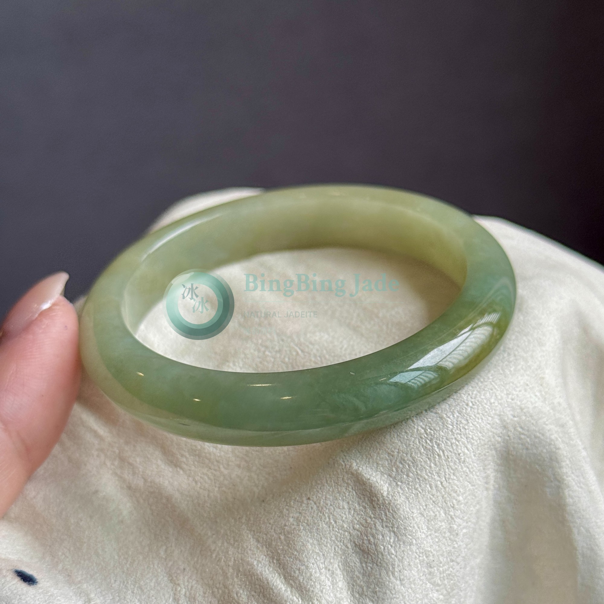 Soft Meadow Glow Jadeite Bangle 53.8mm