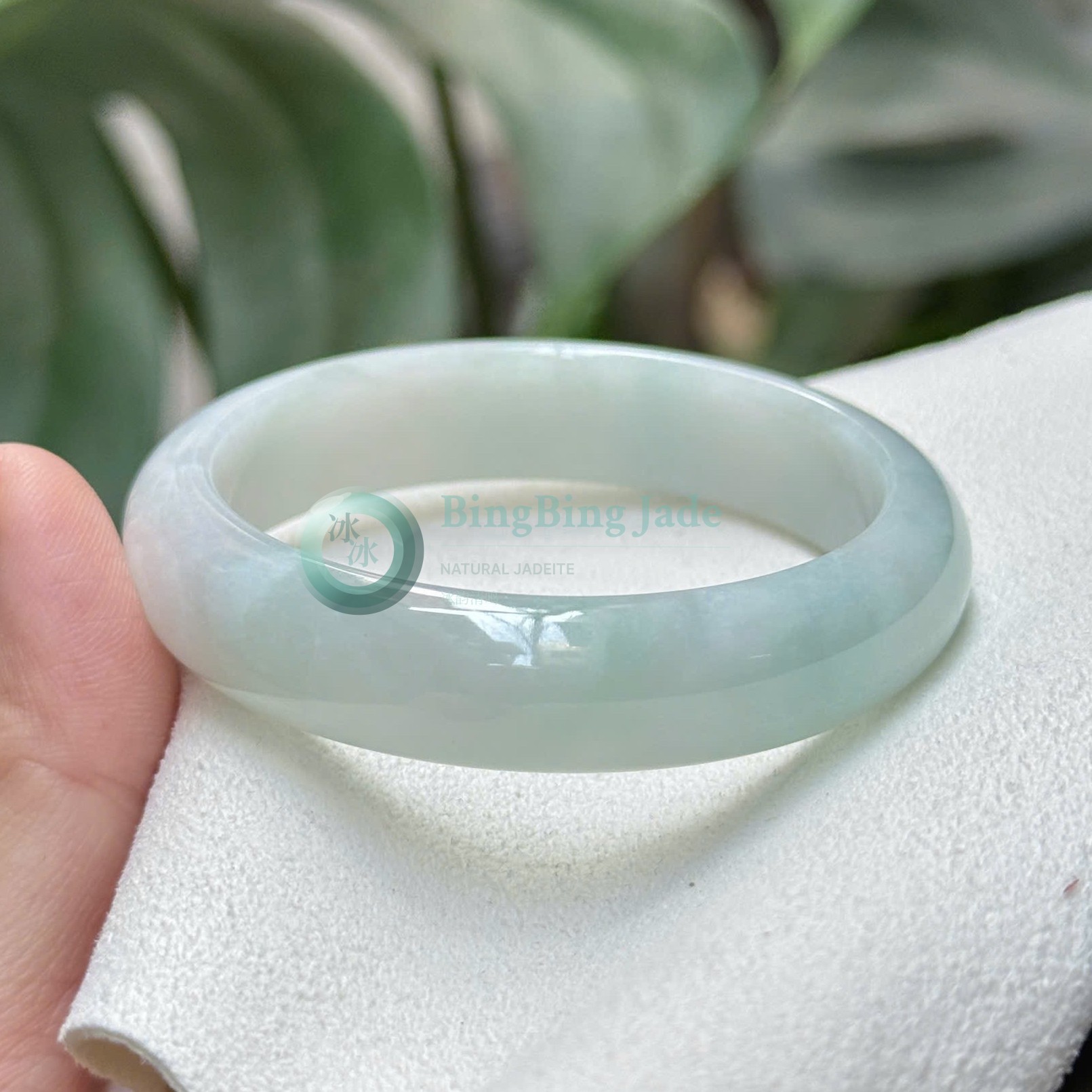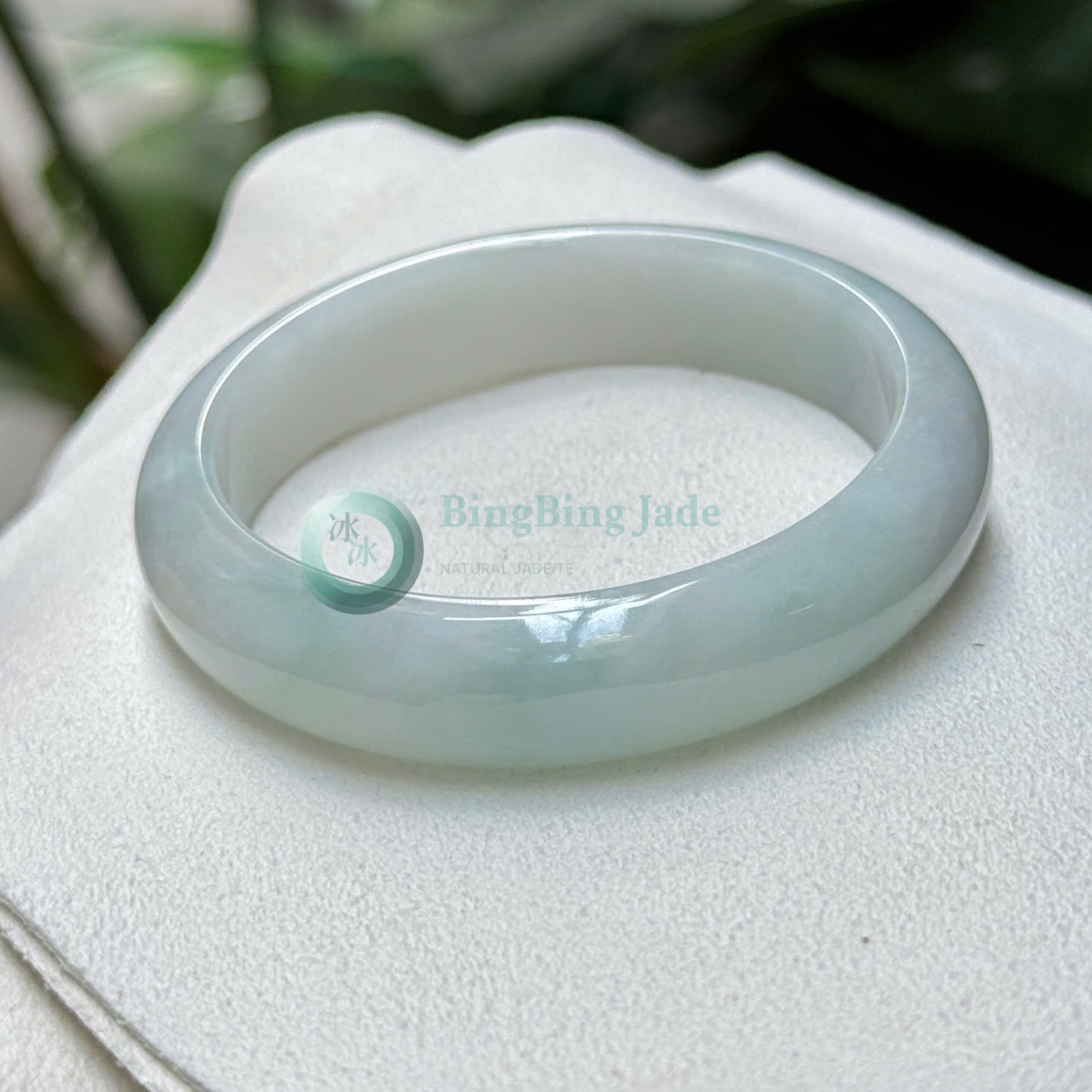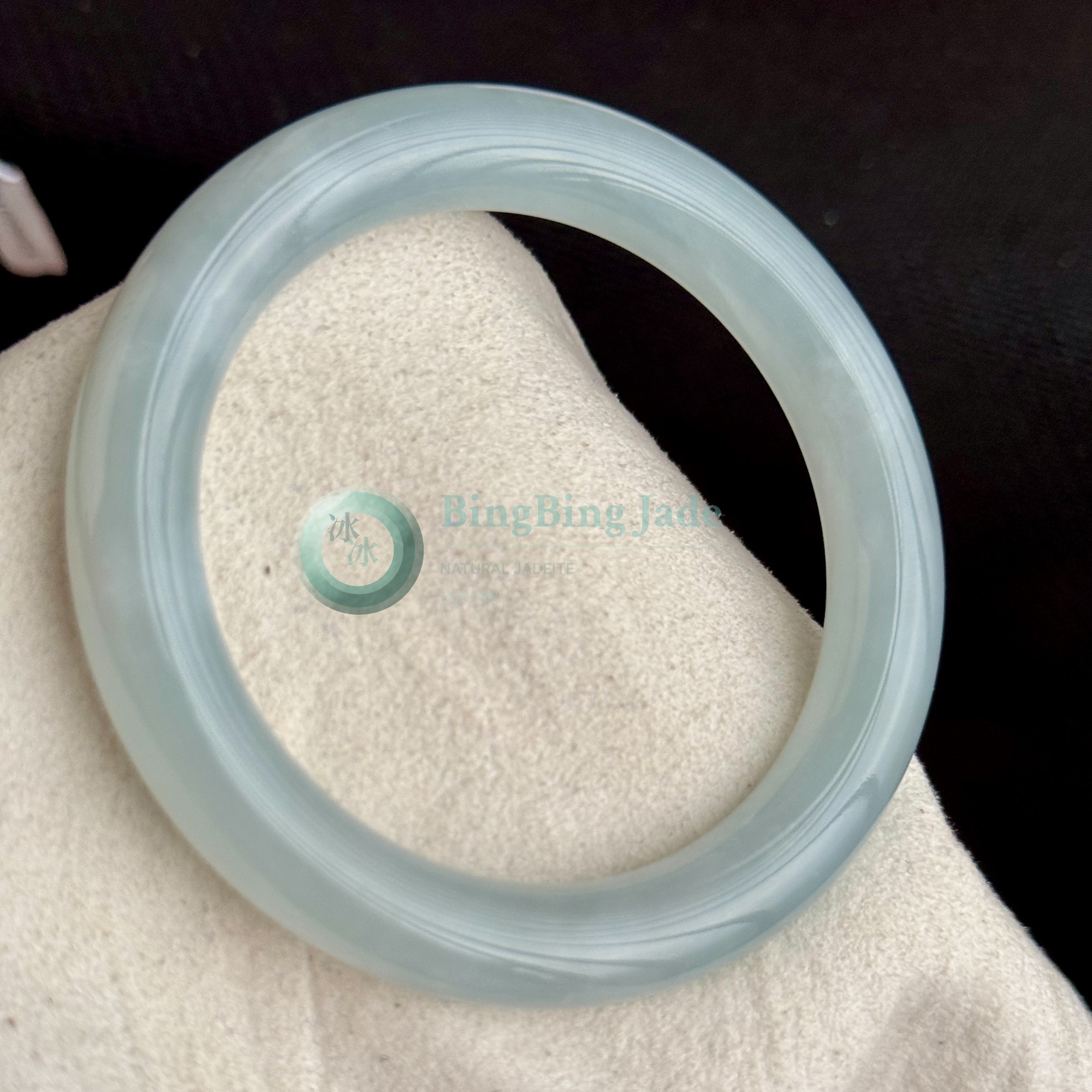 Sky Cloud Translucency — Pale Blue Jadeite Bangle 53mm