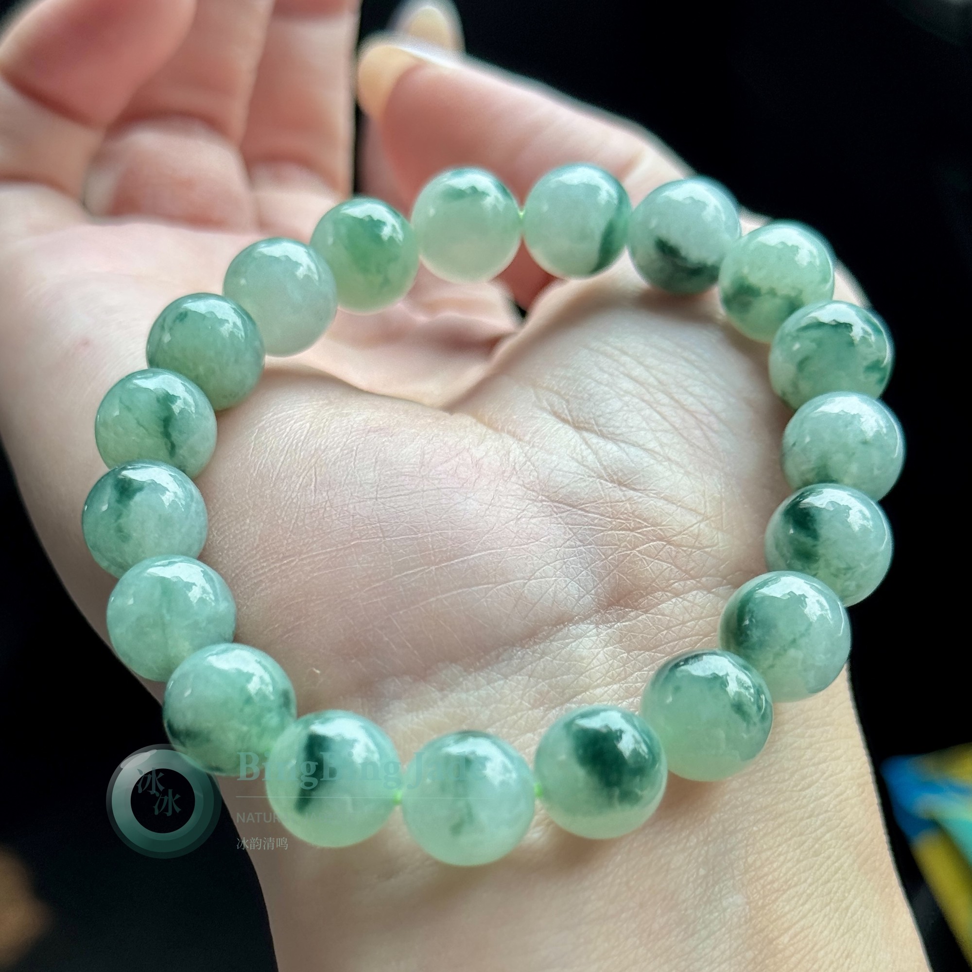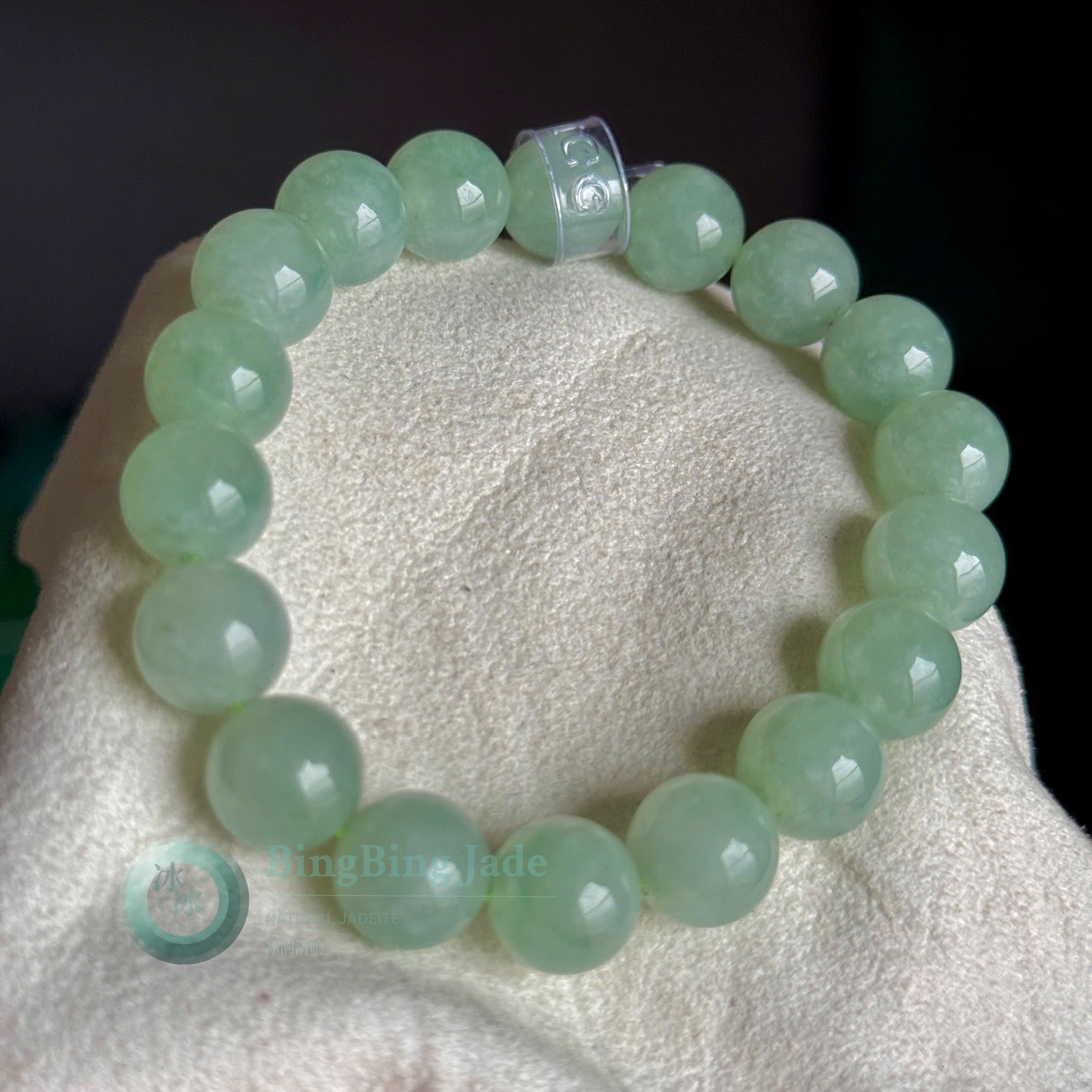 Grape-Green Jadeite Bead Bracelet 11mm — Cool Jelly Translucency