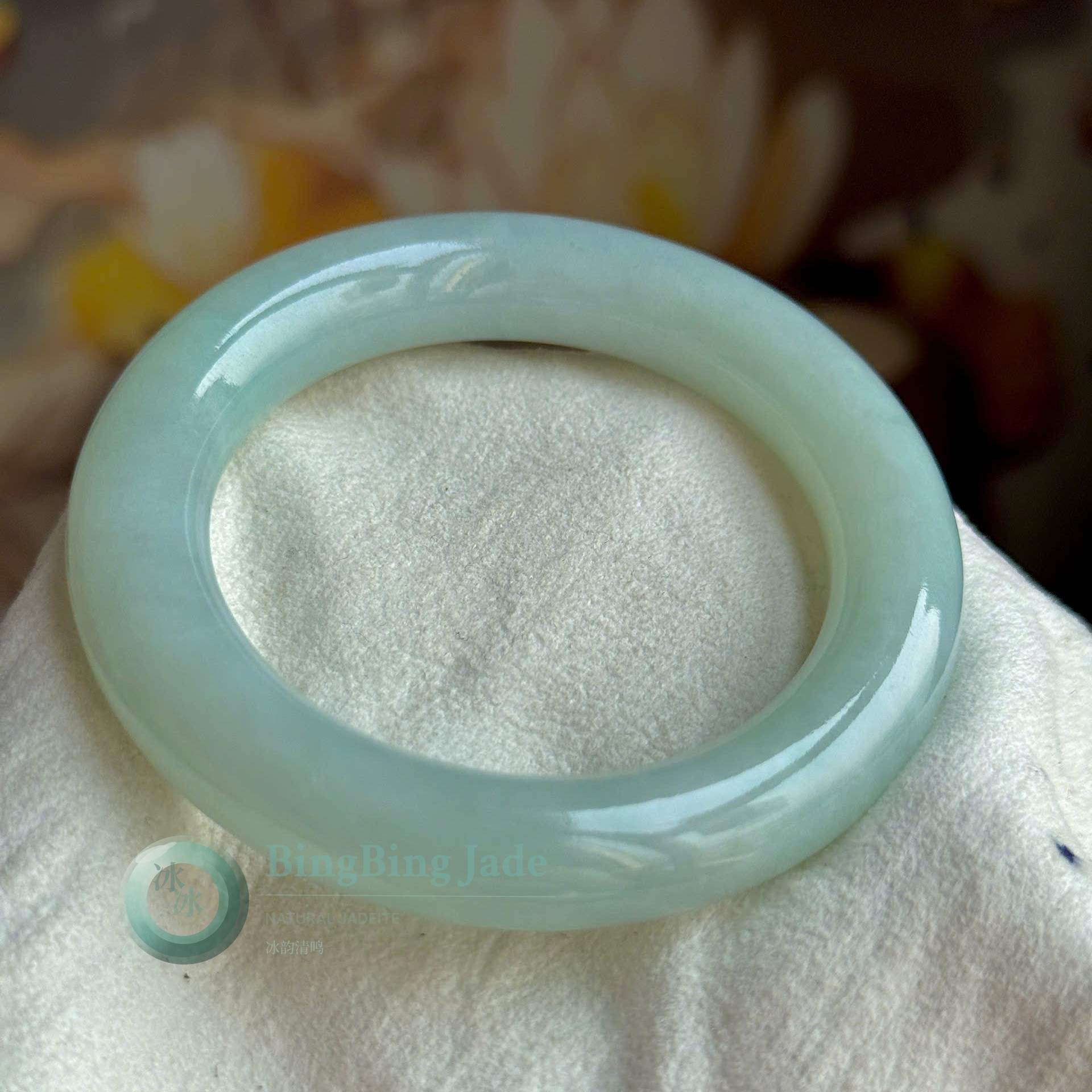 Pastel Rose Mist Icy Jadeite Bangle 54mm — Beaded Strand Combo