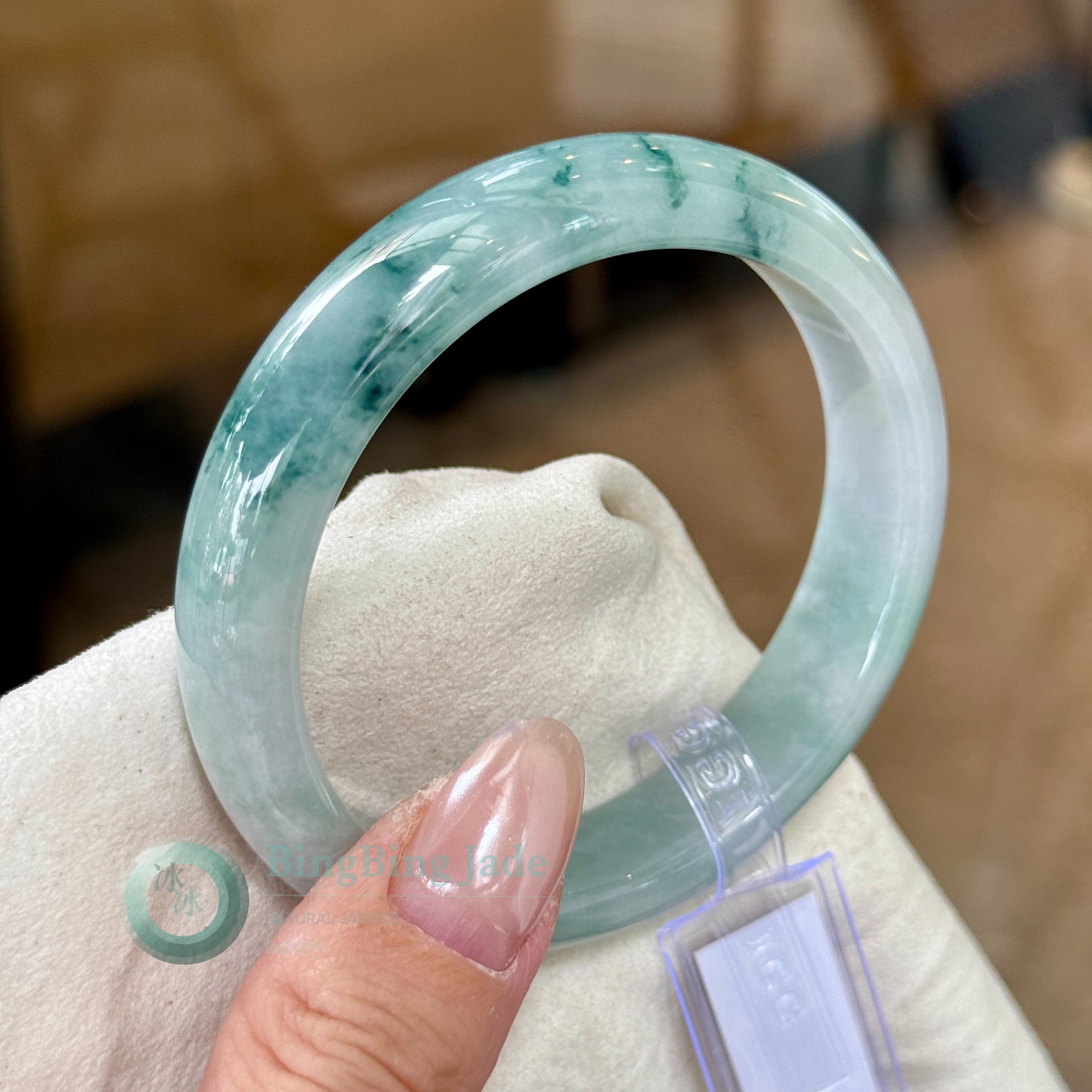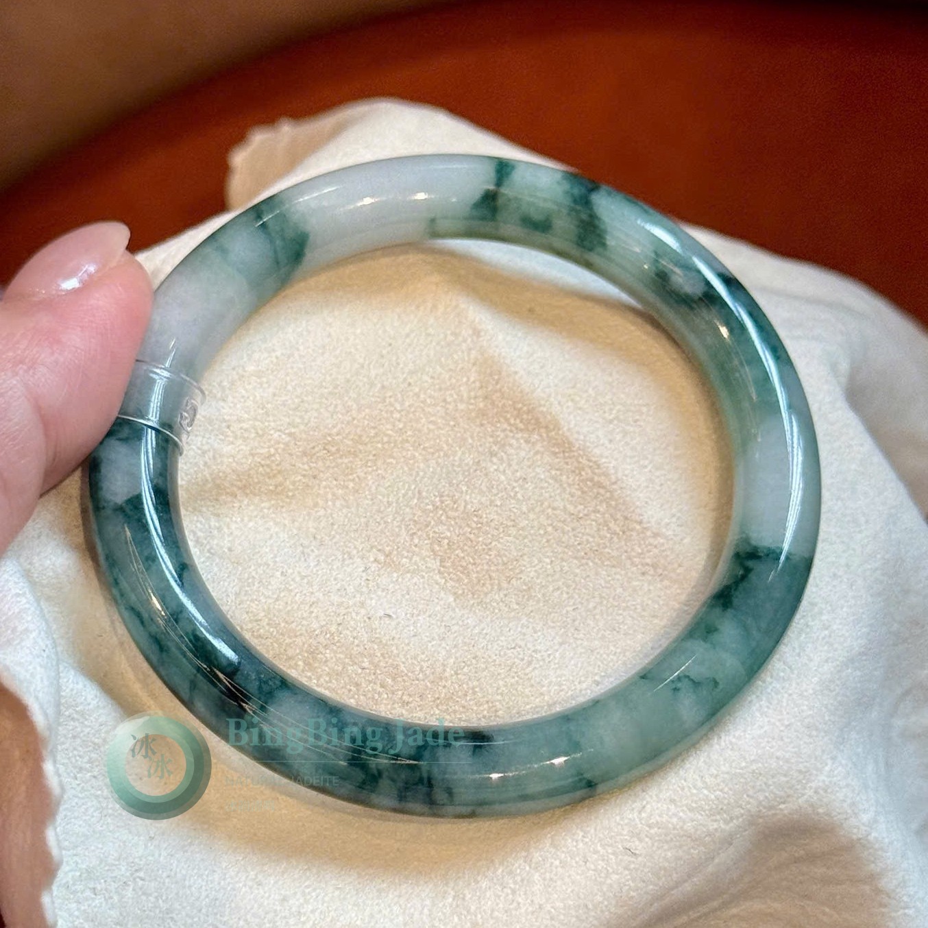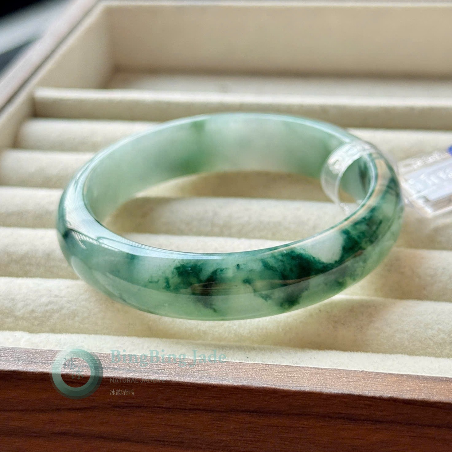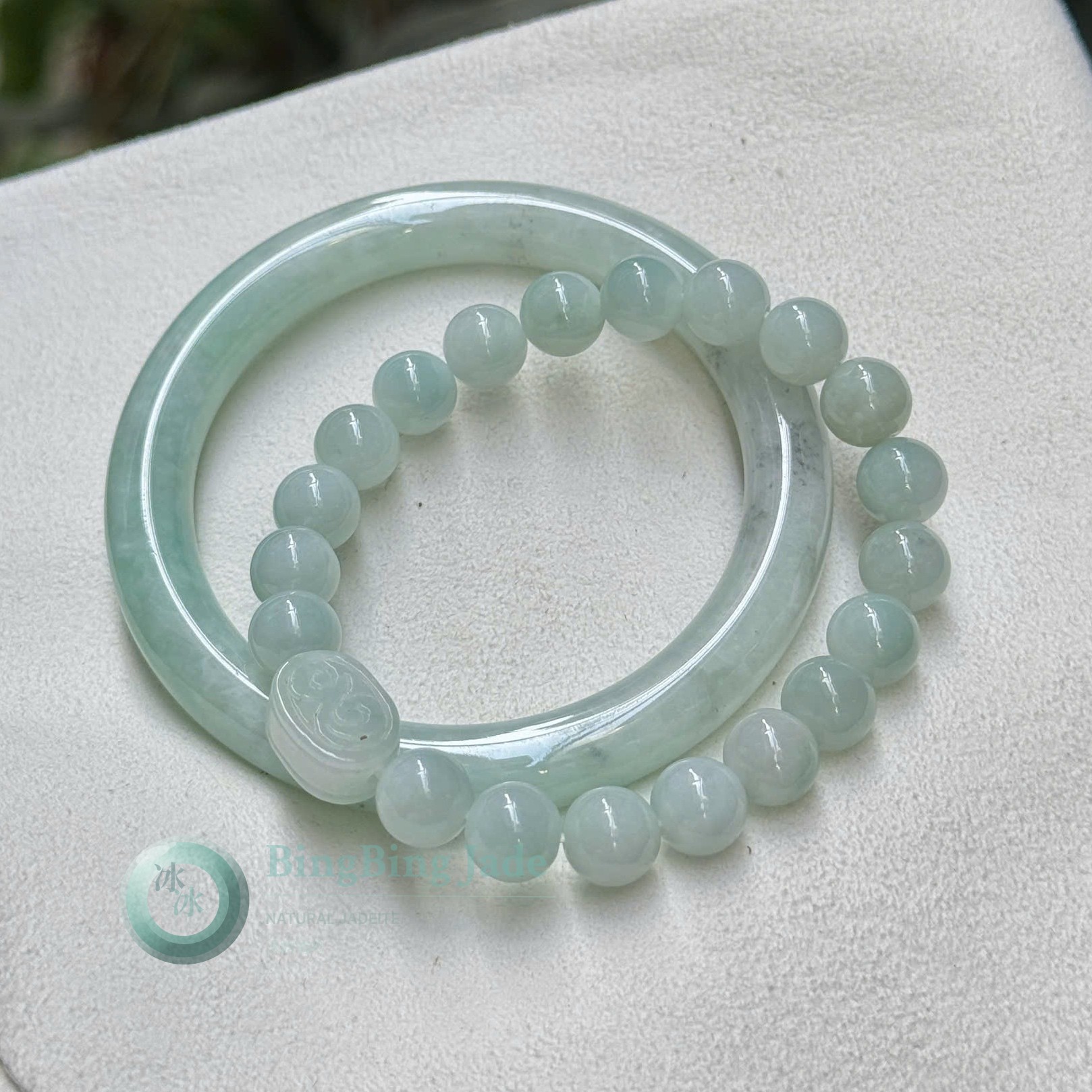 Moss & Mist Jadeite Bangle 53.7mm with Matching Bead Bracelet Set