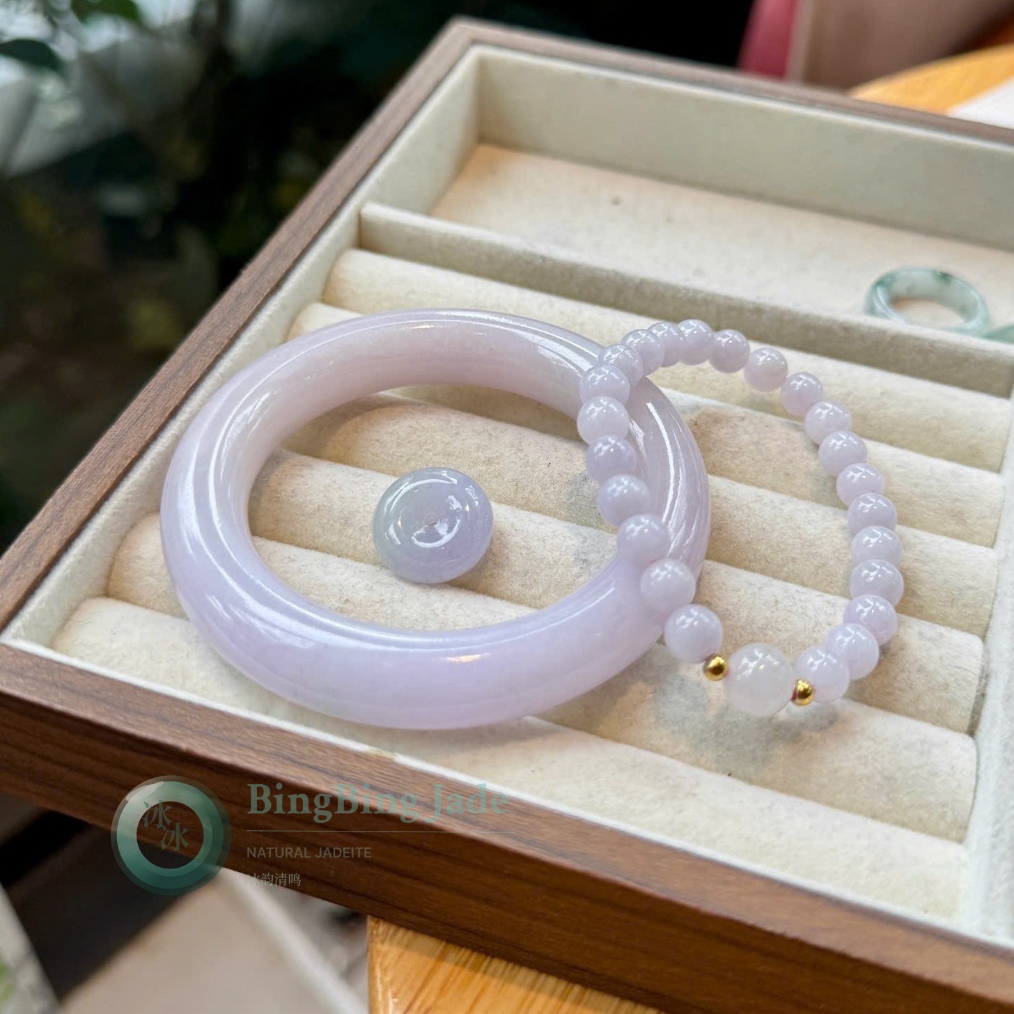 Lilac-Rose Mist Jadeite Bangle Set 51.8mm — Bead Strand & Pendant