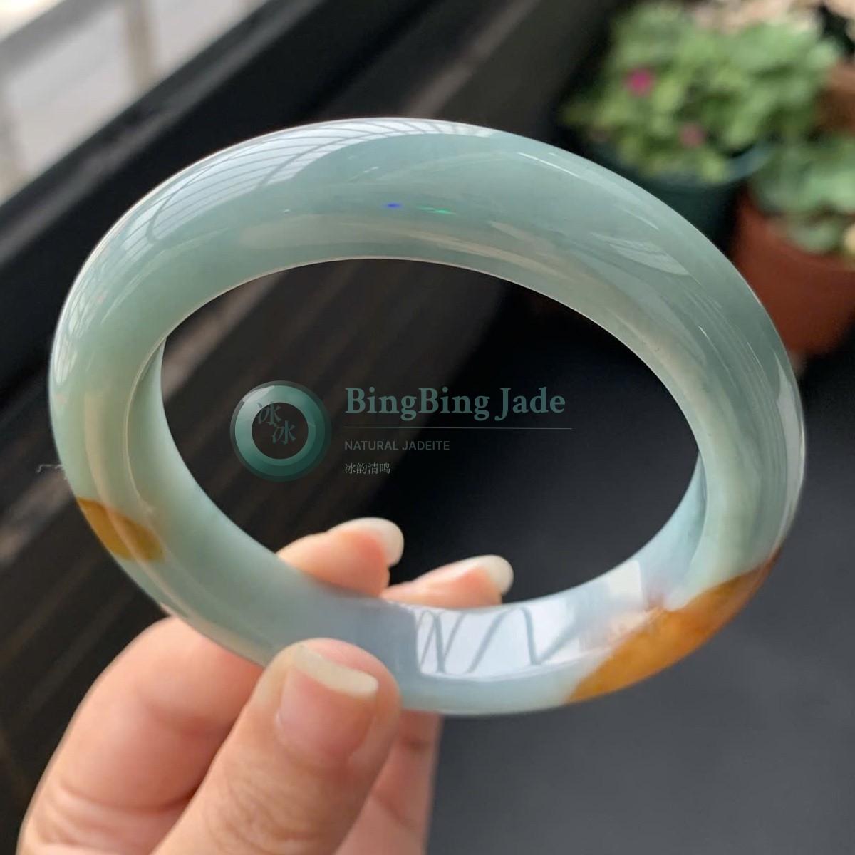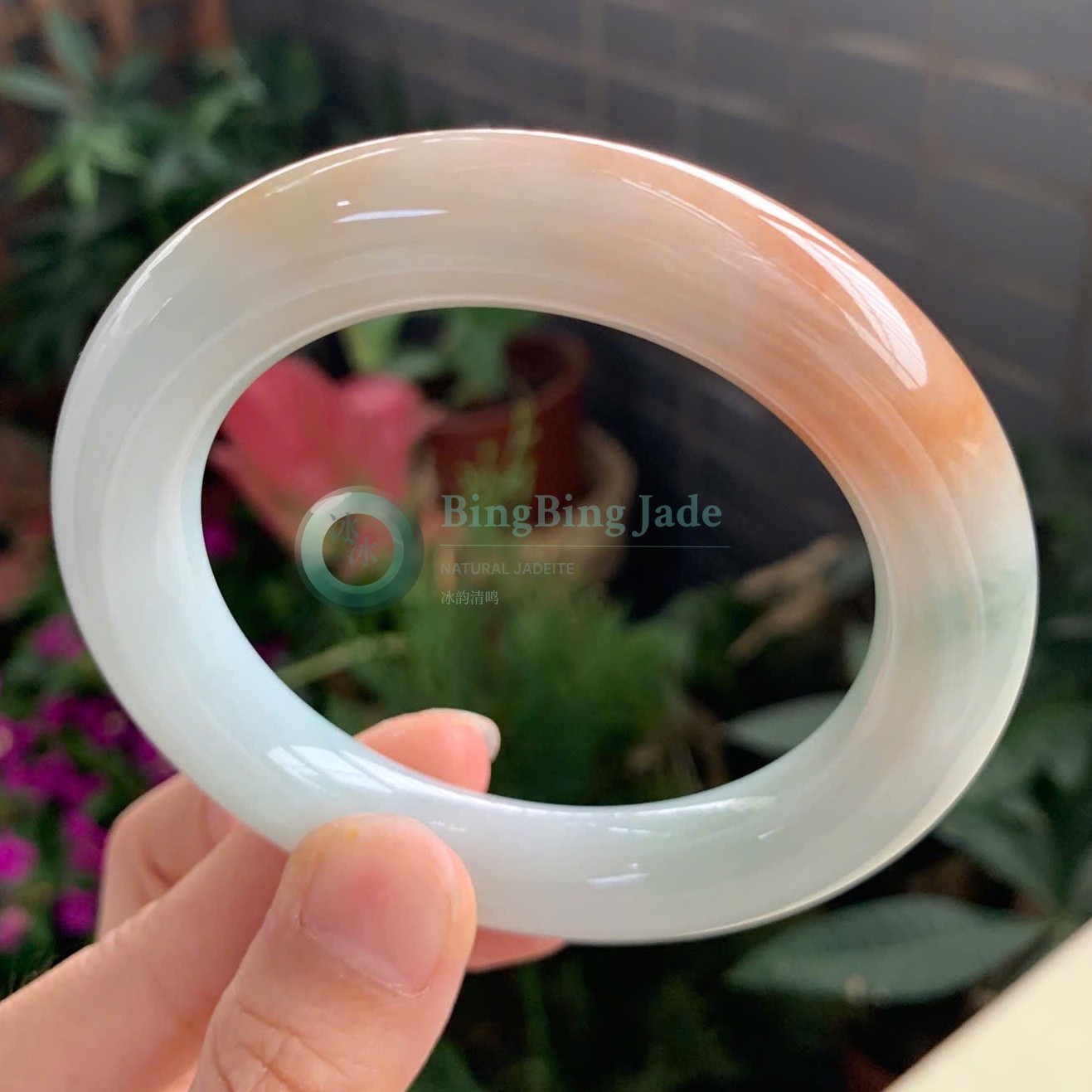 Icy Celadon with Honey Bloom Jadeite Bangle 57mm
