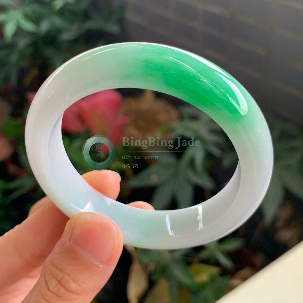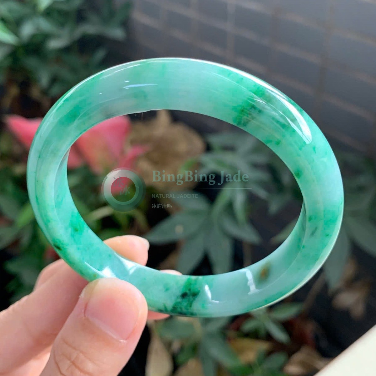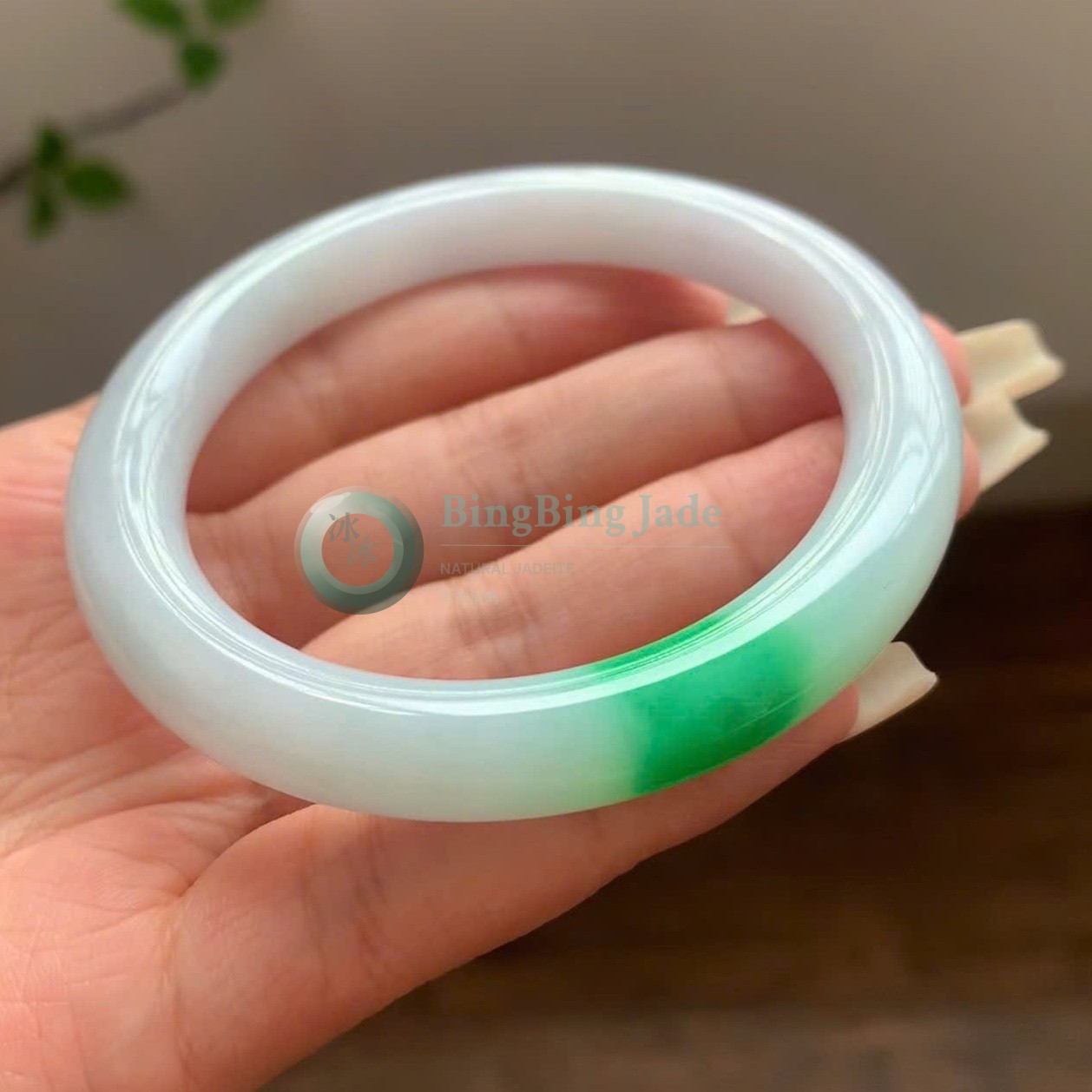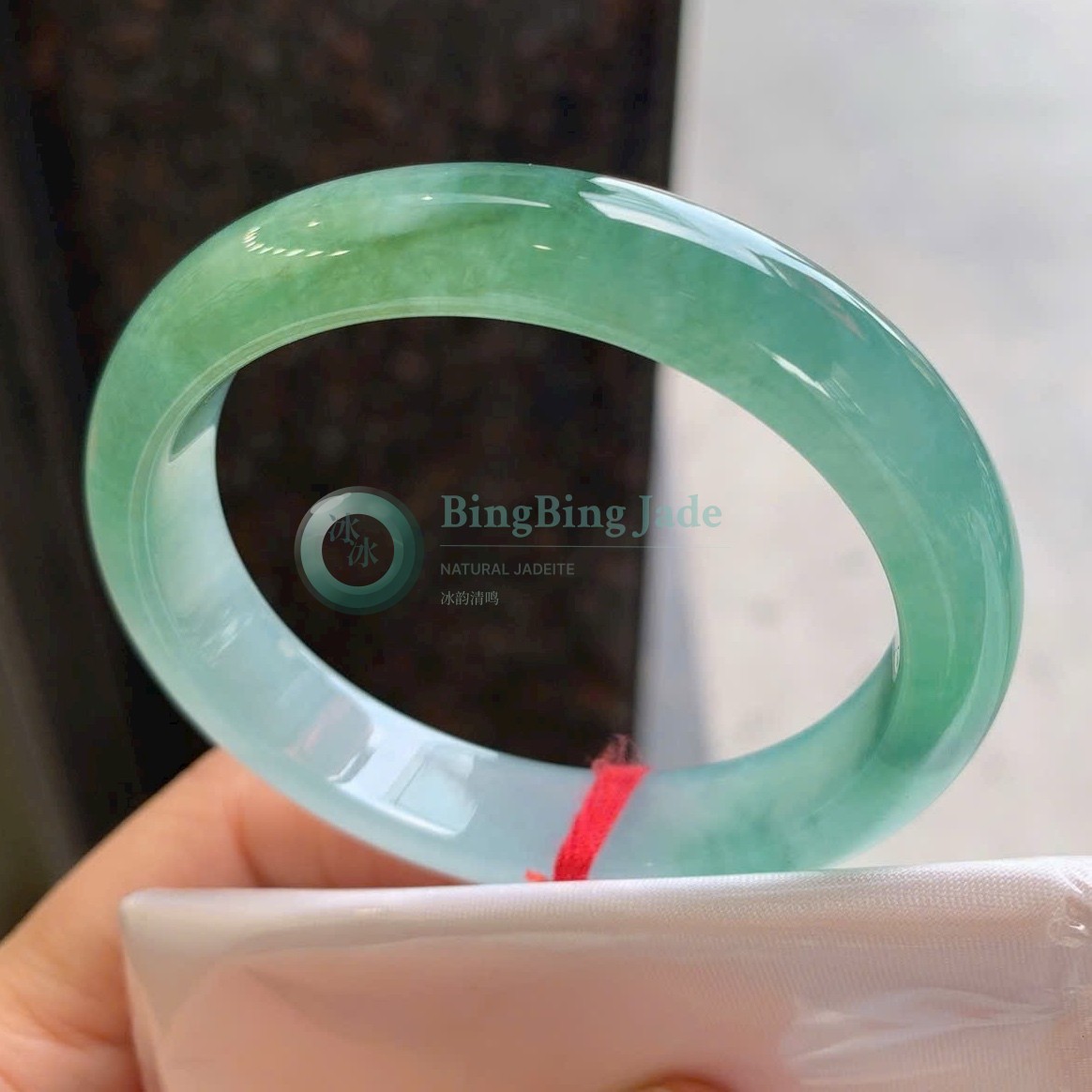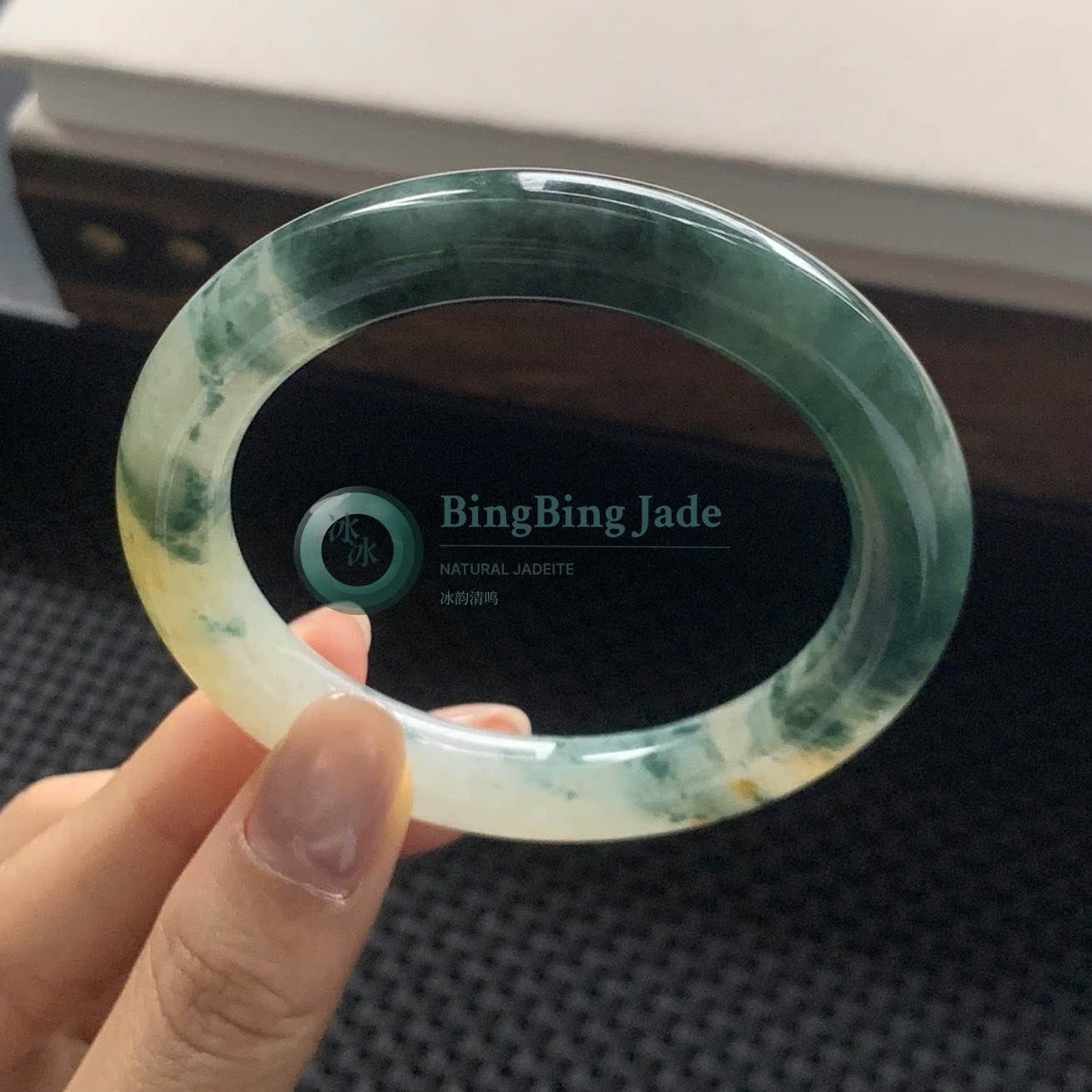 Emerald Drift on Pale Mint — Jadeite Bangle 58mm