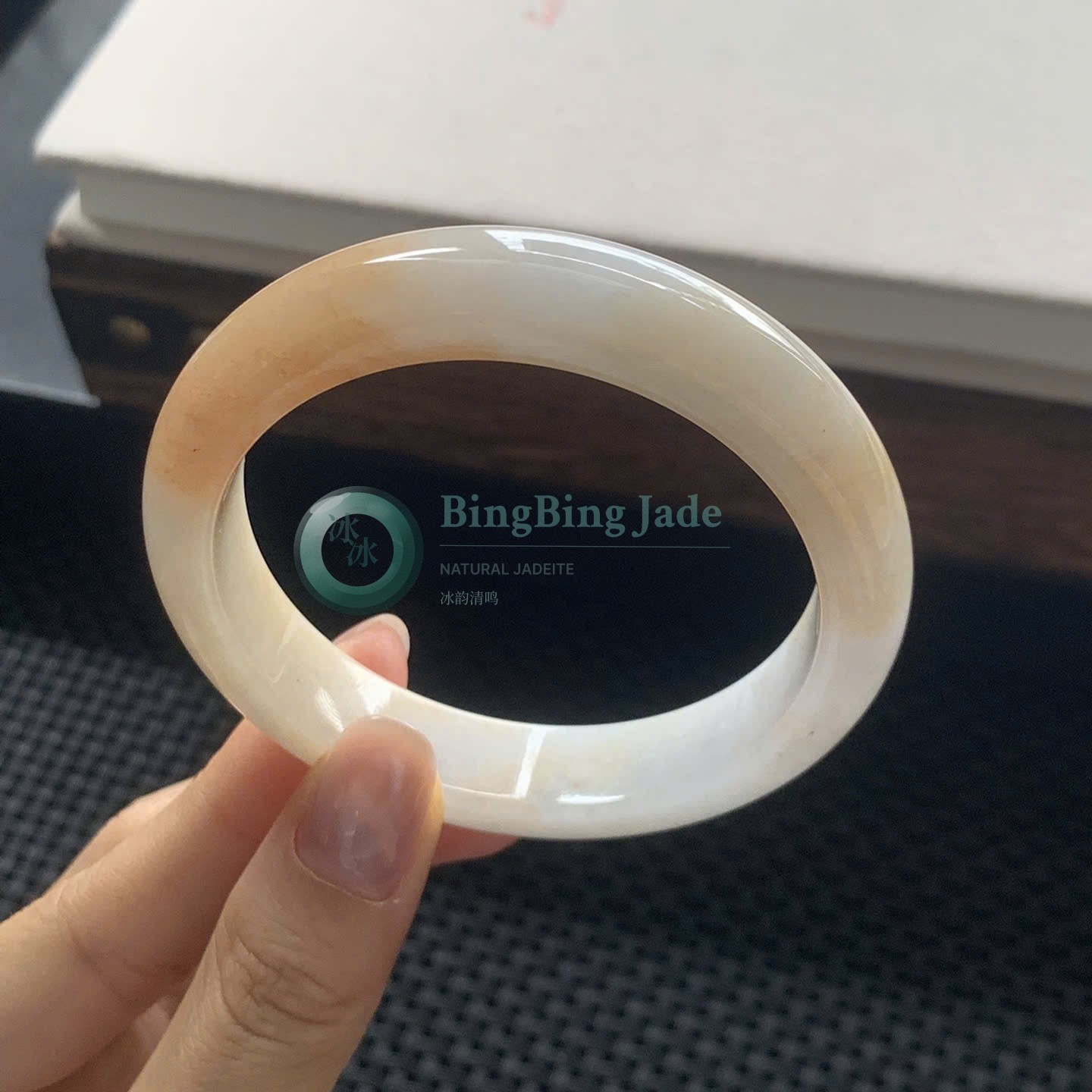 Warm Honey Veil over Creamy Glutinous Jadeite Bangle 56.8mm
