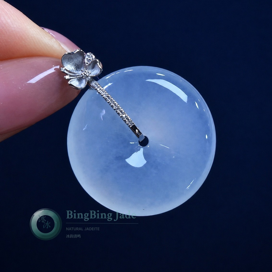Icy Moonlight Jadeite Ping An Kou Pendant 24mm