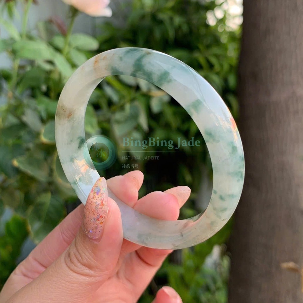 Emerald Clouds on Spring Water Jadeite Bangle 53.7mm